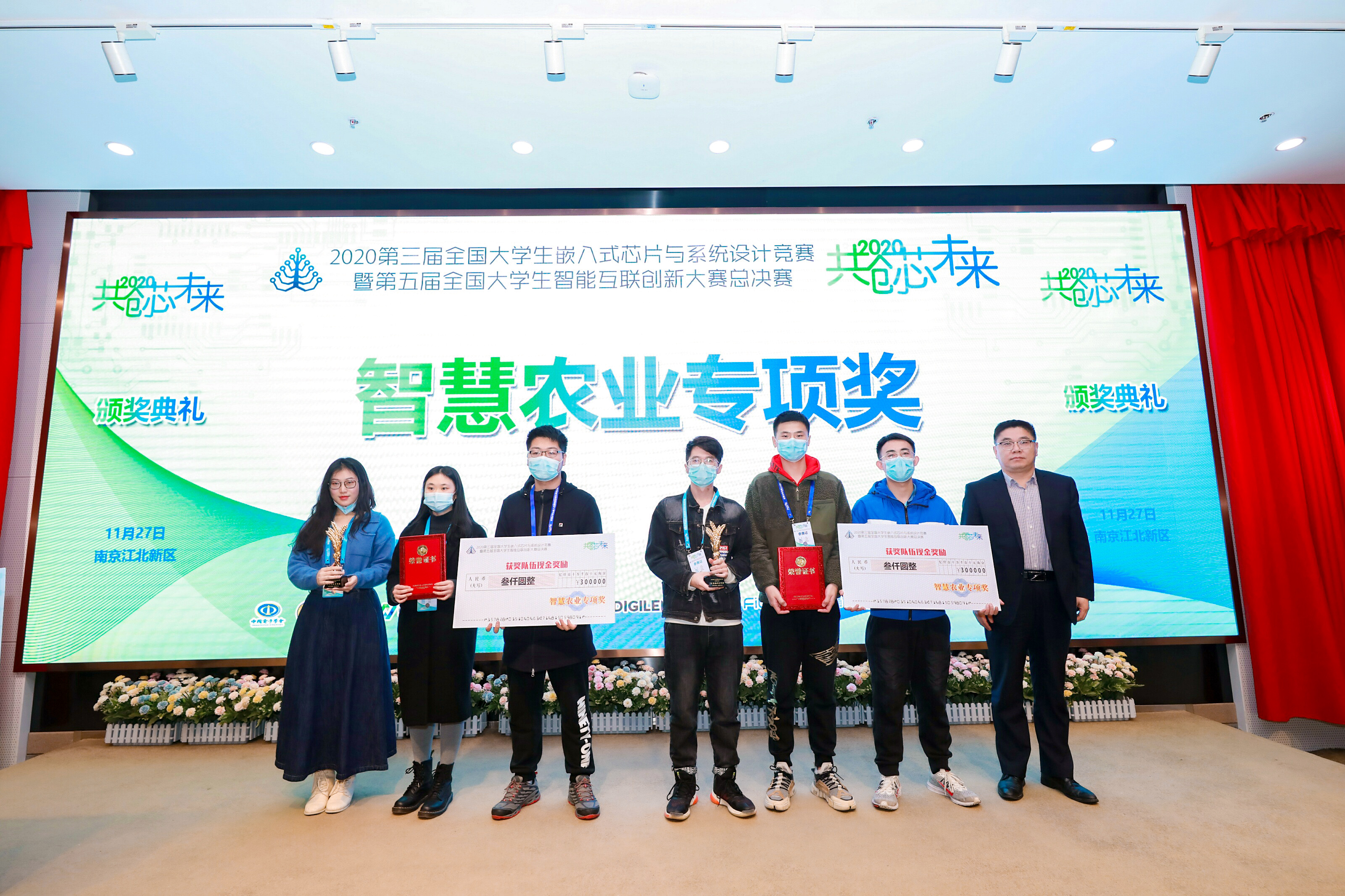 郭宋、仝曦熳、张妮组项目“基于机器视觉的稻麦播种漏播检测及智能补种装置”荣获一等奖和智慧农业专项奖,并获奖金6千元;陈涛、袁朴冰、陈悦洁组项目“基于FPGA和暗通道先验算法的便携式雾透仪”荣获三等奖,并获得奖金1千元。同时,麻豆tv