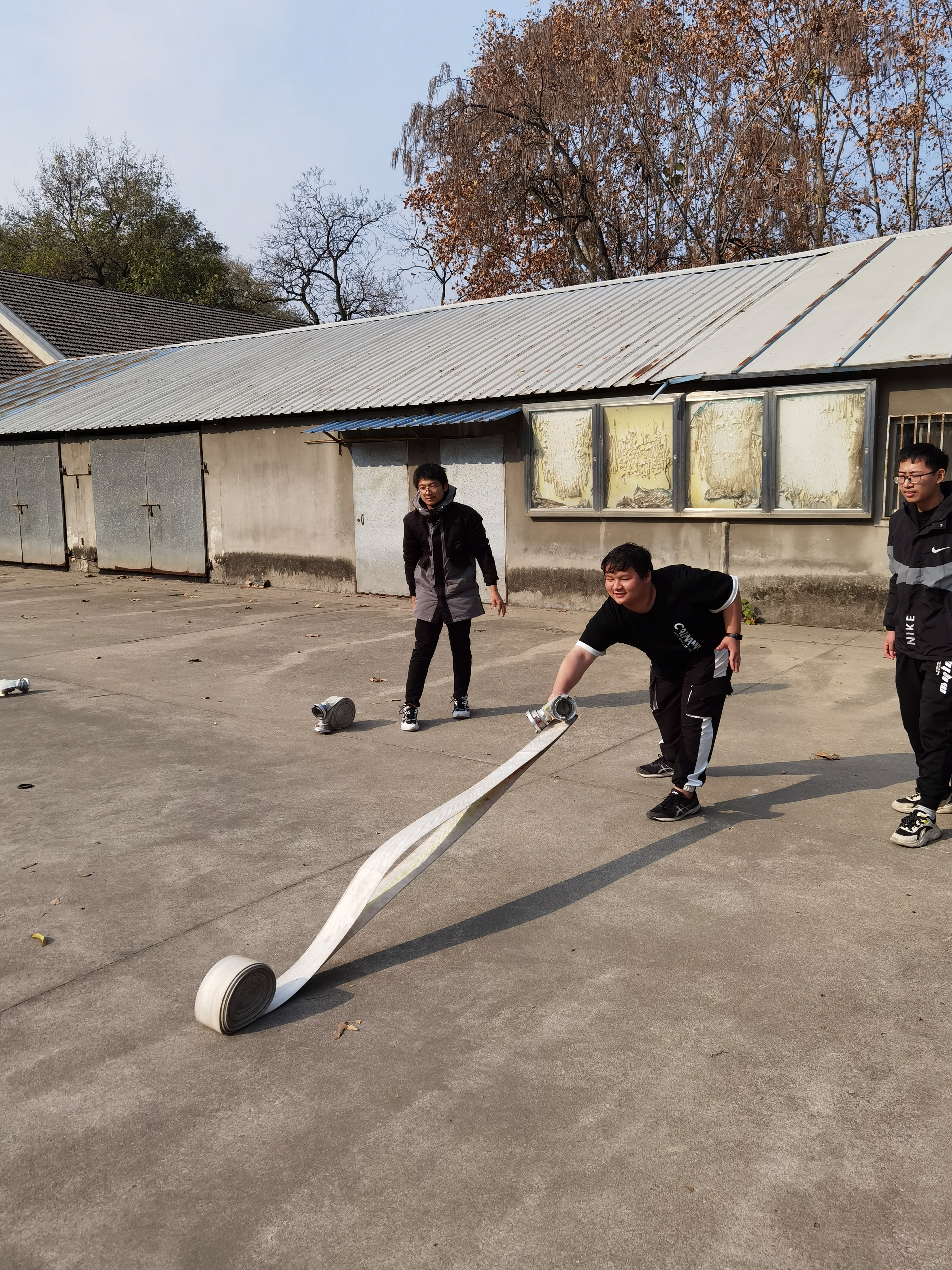 党委副书记卢伟致活动开幕词,并强调校园各方面安全工作的重要性。接着,消防志愿者向大家展示了消防水带、灭火器等基本消防设备的正确使用方法,让同学们对一些重要消防设施的结构及使用方法有了初步认识。最后,同学们在消防志愿者的指导下,正确有序地使用灭火器将火成功熄灭,同时学会了熟练使用消防水带。通过本次实际操作,同学们不仅牢牢掌握了部分消防器材的操作方法,并且收获了灭火过程的操作要点。