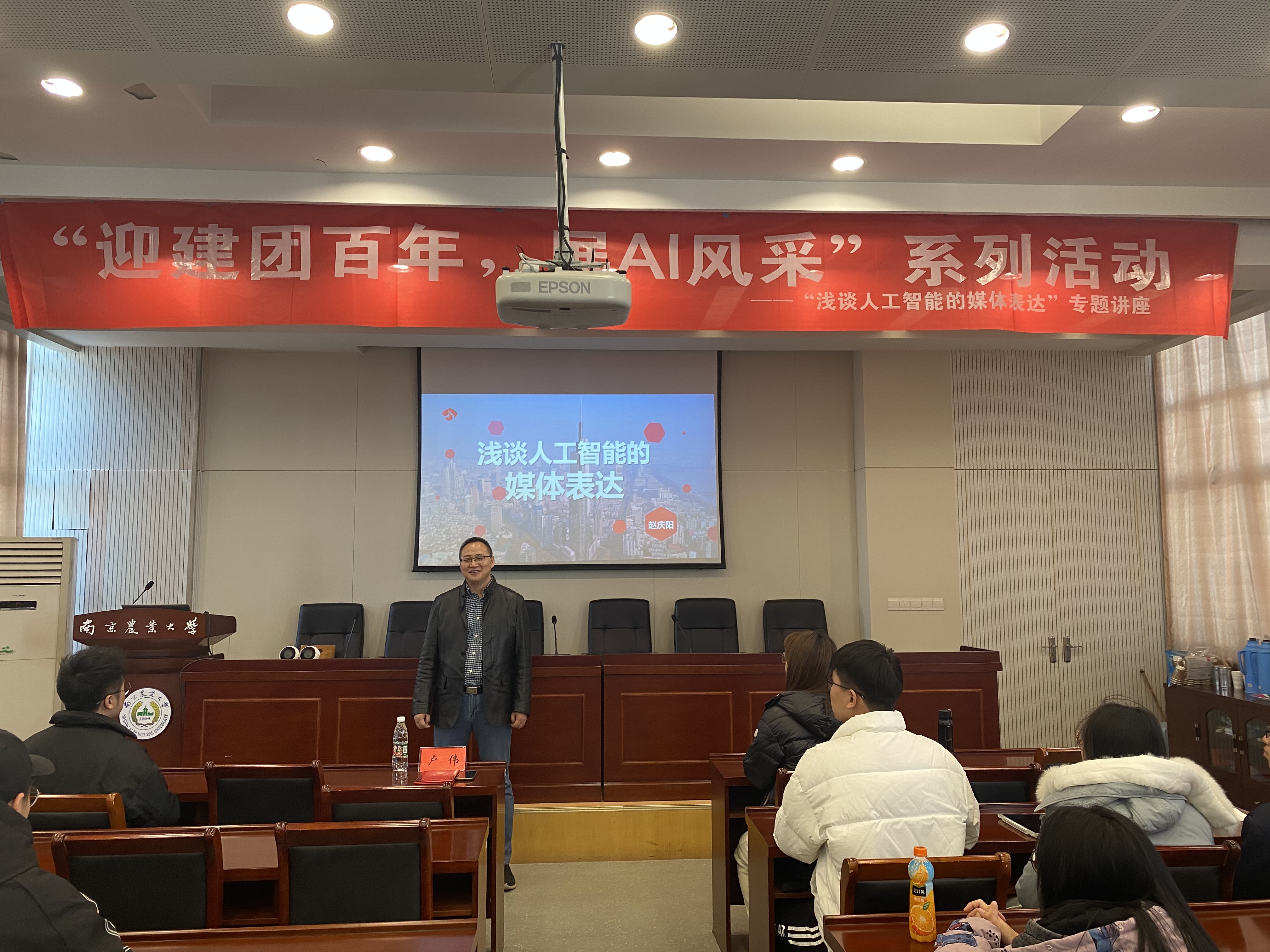 于育贤楼C502成功举办“迎建团百年,展AI风采”系列活动——浅谈人工智能的媒体表达专题讲座,讲座特邀江苏卫视节目中心二部主任赵庆阳担任主讲人,麻豆tv