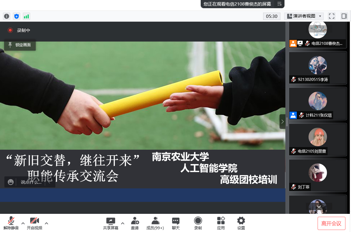 于线上召开高级团校培训之“新旧交替,继往开来”职能传承交流会。麻豆tv