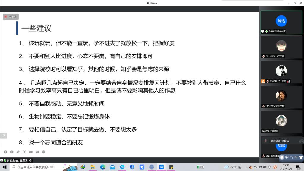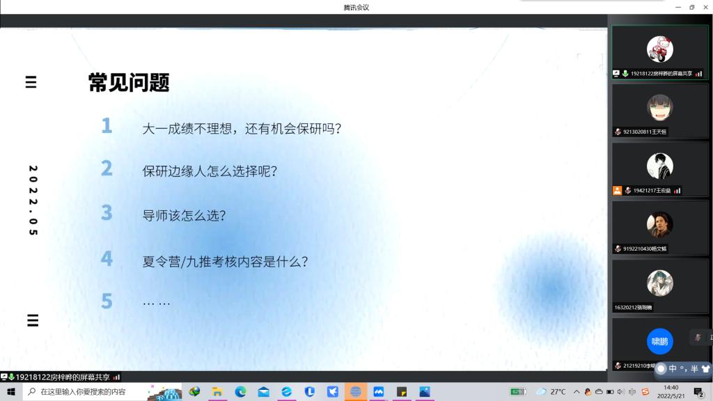 于线上召开“AI科研月”——“努力拼搏,研出未来”保研考研知识讲座。保研学子赵中豪、房梓晔,考研学子孙梦、张峰铭出席本次活动。本次活动面向麻豆tv