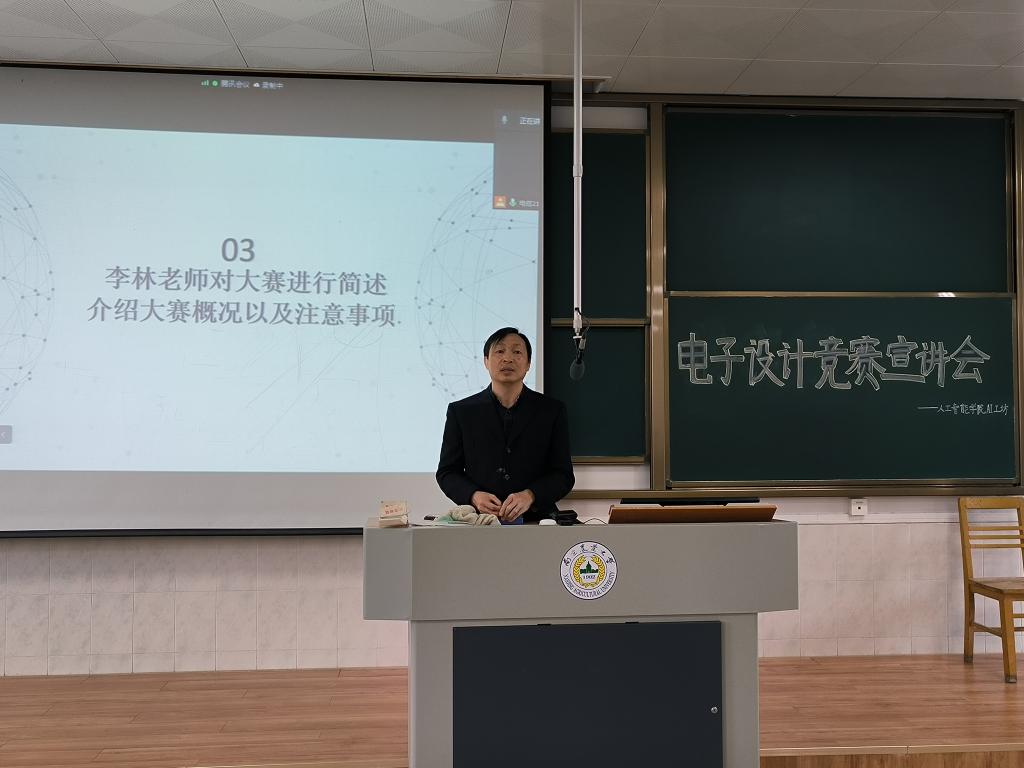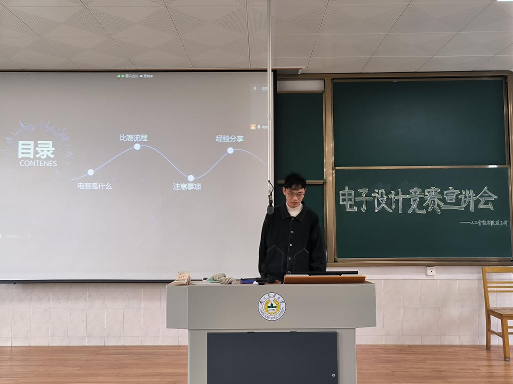 AI工坊在培训部408举办了全国大学生电子设计竞赛宣讲会。全国大学生电子设计竞赛是教育部和工业和信息化部共同发起的大学生学科竞赛之一,旨在推动高等学校促进信息与电子类学科课程体系和课程内容的改革。竞赛中既有理论设计,又有实际操作,全面检验和加强参赛学生的理论基础和实践创新能力。