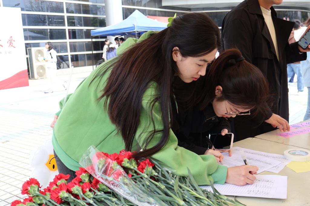 此外,男生可以写下一句想对女生说的话,鼓励女生勇敢做自己。活动最后,工作人员收集男生写的祝福语发送给参加活动的女生,并为女生们送上鲜花。活动现场气氛热烈,同学们参与热情高涨,活动最终取得圆满成功。