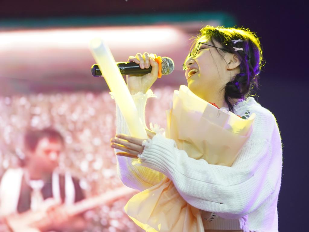 动听的歌声,拨动观众的心弦。伴随她极具穿透力的高音而来的是观众们热情的欢呼与掌声,感谢她在舞台上的精彩演唱。