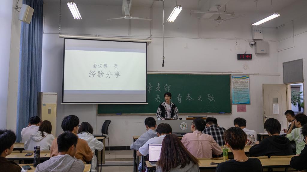 活动开始,大二的班长或团支书上台对班级的学风建设、班委的工作机制、班级活动的组织安排、ppt制作等多个在班级管理中常常出现问题的方面进行了汇报,并结合自身在遇到这些问题时采取的相关措施进行经验分享。然后,大一的班长或团支书结合自身的相关经历和各班的实际情况提出不同的问题。大二的学长们对这些问题根据经验逐一作出了解答。最后,主持人说明了下个月将要举行的活动并提醒班干部们要提前做好相应准备,鼓励督促班级同学参加。会议在掌声中圆满结束。