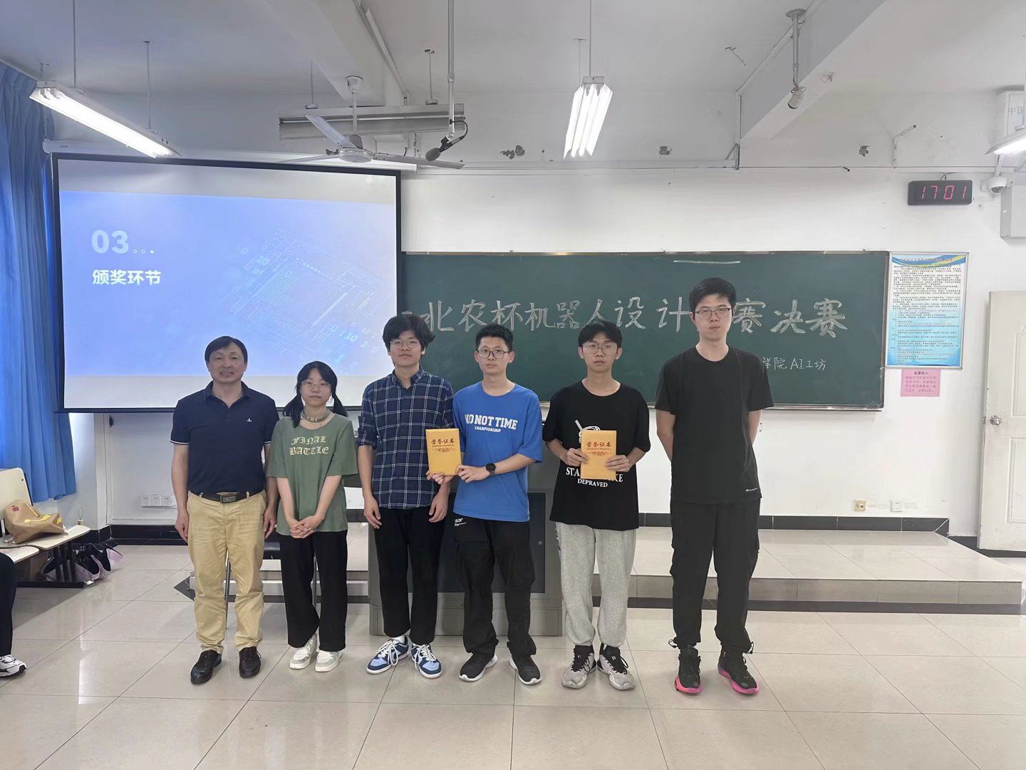 和工学院的大一同学进行宣传,介绍比赛规则和要求,让同学们对比赛有一个初步的了解;在中期,AI工坊于5月13日下午组织选手们进行参赛进度汇报,对参赛选手们进行了中期检查,并给予选手们一些建设性的意见;在末期,AI工坊于5月27日下午有序组织开展决赛,组织各人员根据各小组作品在赛道的完成度、成果汇报、答辩、作品设计报告的四项情况进行综合打分评奖。由李林老师评价并指导参赛选手的小车汇报、设计报告以及赛后答辩,由王嘉成、李涛、周新程根据参赛选手的智能小车完成赛道的情况进行评价打分,最后由刘威、钱瑞、冯义博、丁巧芸、熊子怡统计各参赛小组的分数。经评审,最终的获奖名单如下:
