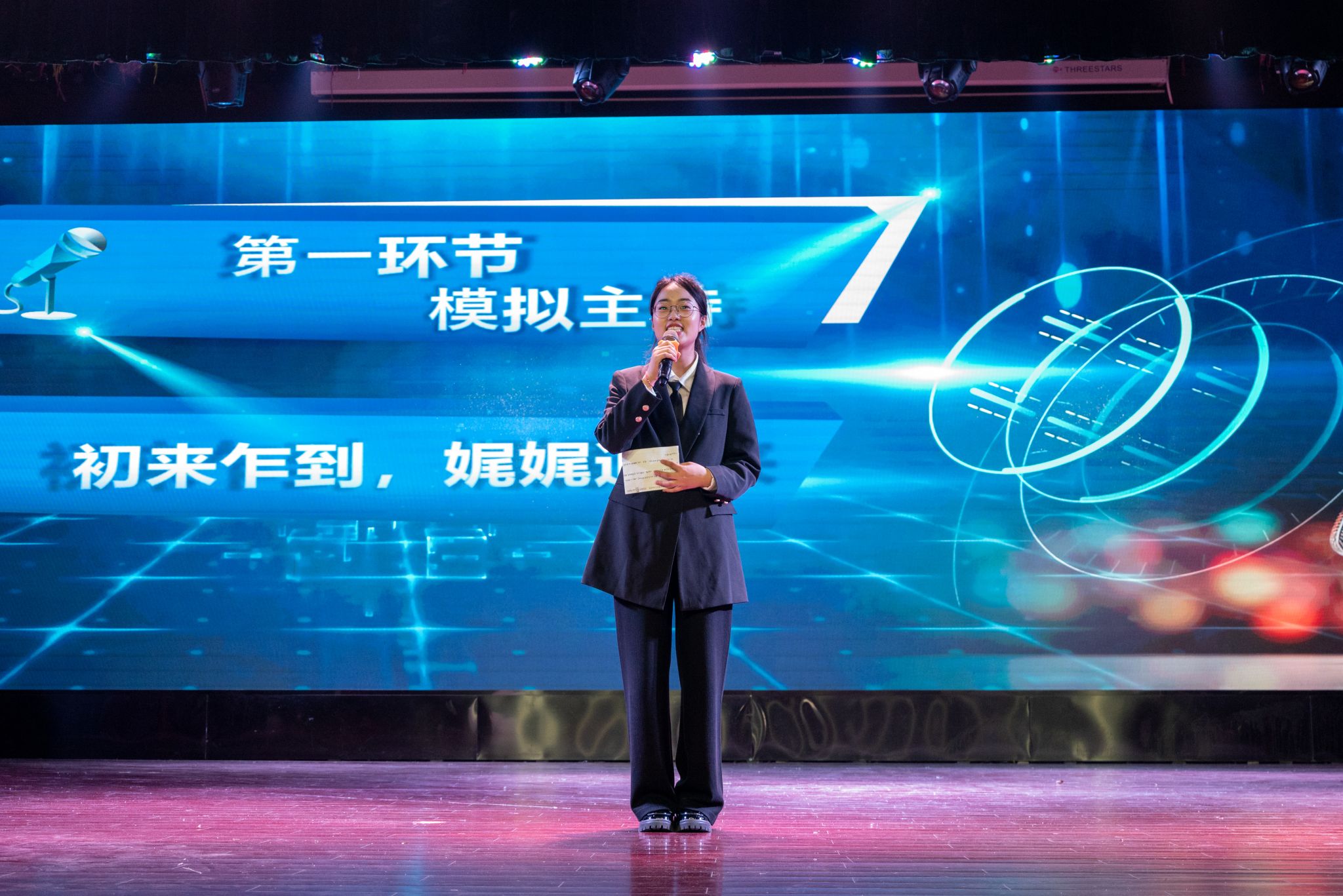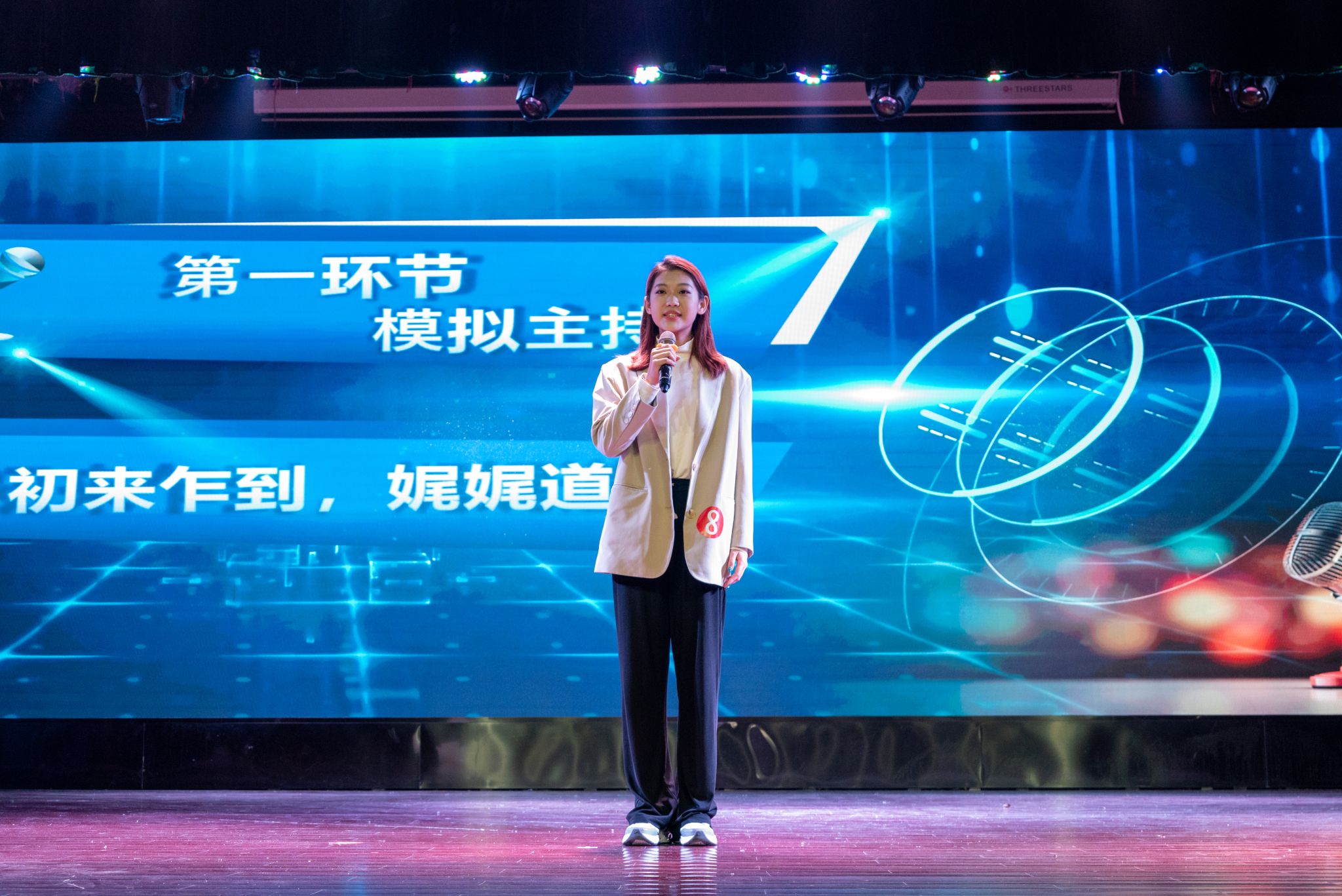 经过初赛与复赛两轮激烈的角逐,最终有12位选手脱颖而出登上决赛的舞台。决赛设置有“初来乍到,娓娓道来”模拟主持、“联动青春,与你同行”搭档主持与“主持现在,把握未来”即兴评述三个环节。