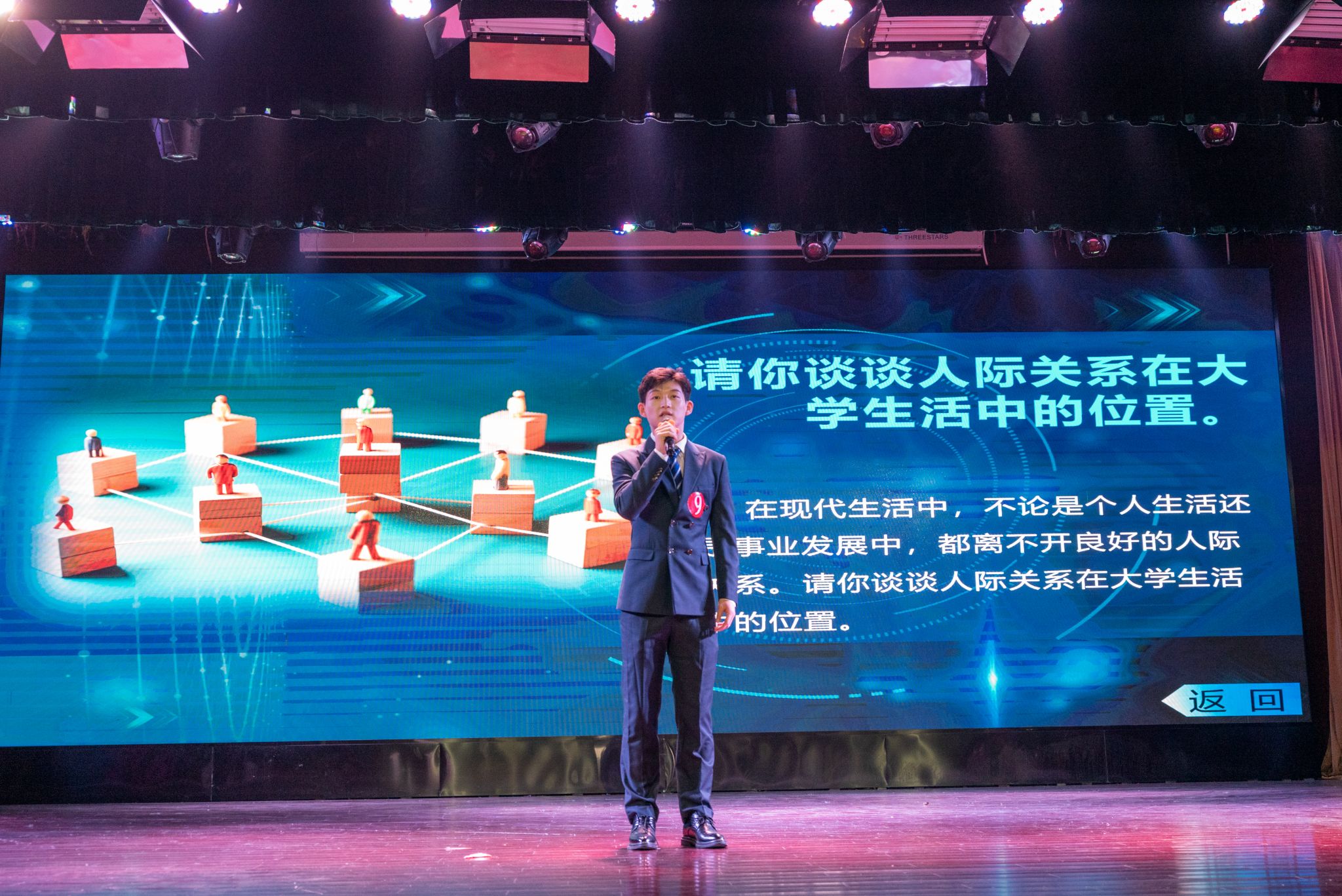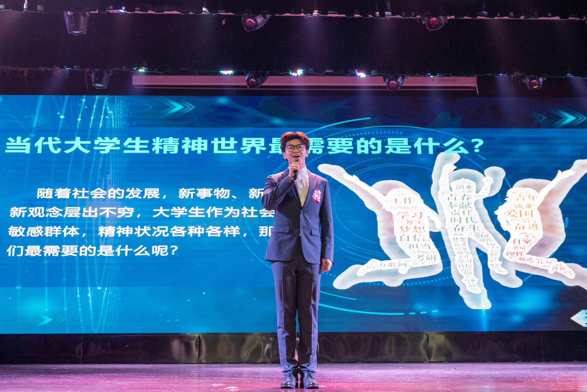 在最终轮,选手需随机抽取了涵盖“朋克养生”、“大学生精神世界最需要的是什么”、“45度青年”等与大学生息息相关的时政热点进行180秒的即兴评述。庞宇畅选手结合自身成长之路,阐释人际关系在大学生活中的重要位置,传递青春感悟;任杰选手用周恩来总理的“为中华崛起而读书”的名言引出自己对“青春因奋斗而精彩”的独到理解;张馨蕊选手则凭借着对“45度青年”的幽默解读引来全场的阵阵掌声……选手们有的聚焦自我成长,讲述自己的南农故事,有的结合发展大局,展现“小我”在时代浪潮中的担当与责任,毫不怯场的精神风貌时刻展现着南农学子较高的综合素质。