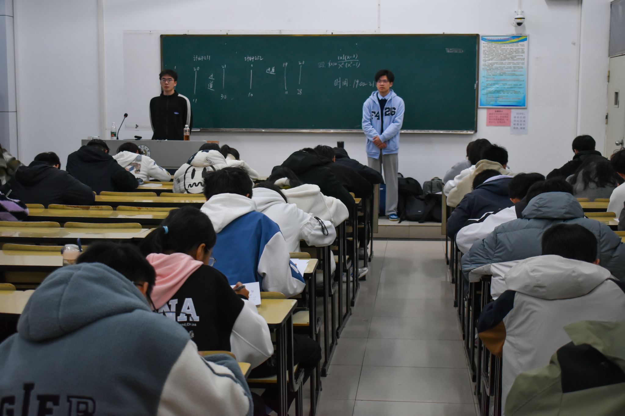 考试前期,院学生会学习部周密策划,详细落实诸如试题编写印刷、监考巡考安排、阅卷人员分配等事宜。考场上,各位考生严守纪律、诚信应考,用脚踏实地的努力检验着学习成果;监考和巡考人员恪尽职守,以公平和公正的态度维持良好的考场秩序。考试结束后,工作人员引导各位考生有序离场,并将考卷呈递至阅卷组。阅卷人员集中批改,全程公平公正公开。学院团委效率与质量并进,现已将成绩报送至各班主任和任课老师,以帮助考生及时总结、查漏补缺。
