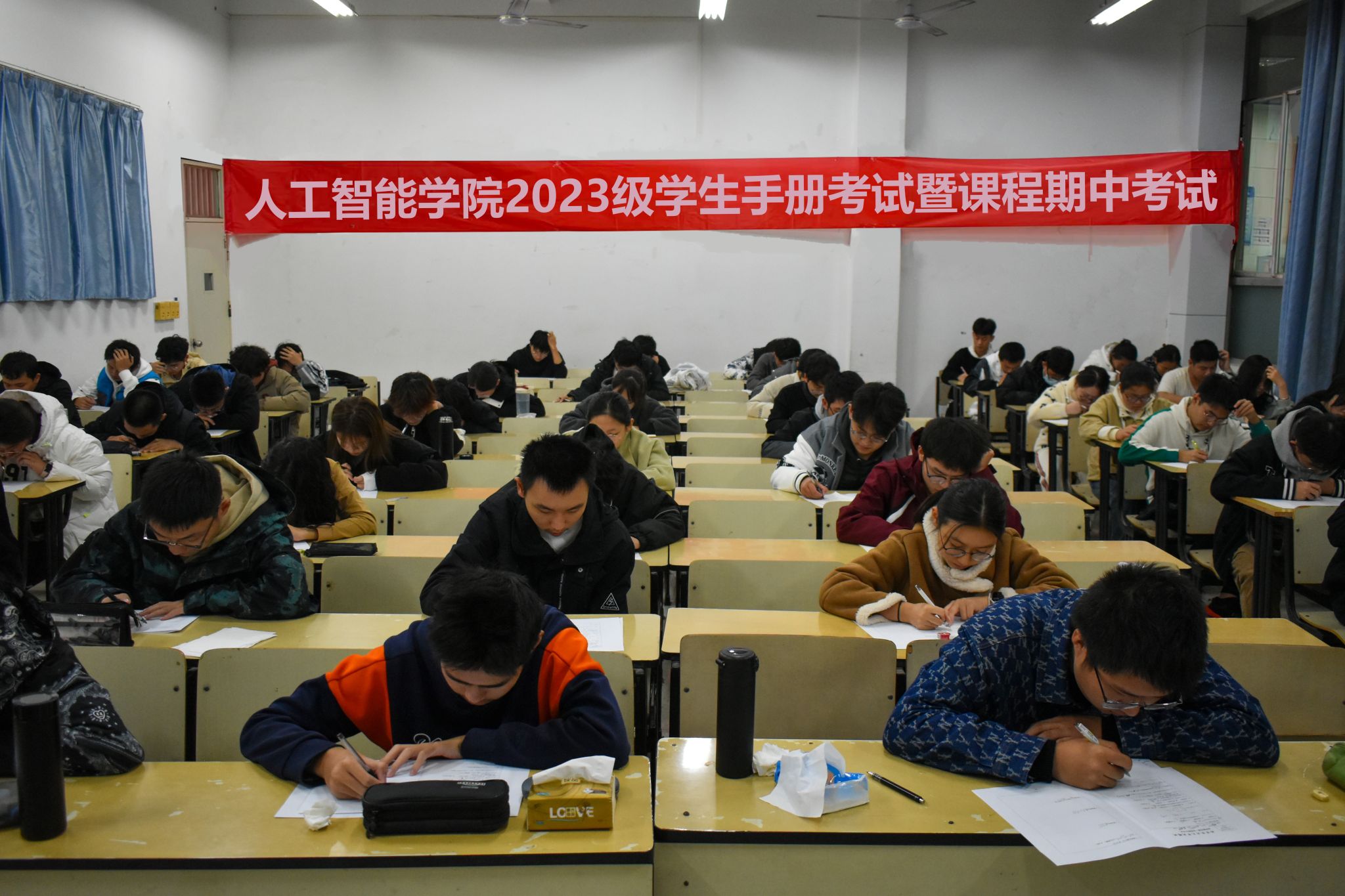 团委于11月11日、11月12日19:00—21:00组织了2023-2024学年第一学期期中考试,2023级新生全部参与考试。考核内容分“C语言程序设计”、“高等数学”、“学生手册”三个科目进行。本次考试由院学生会学习部承办,由教师谢忠红、张浩分别负责C语言和高数的考题编写。