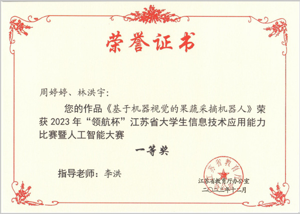 本科生周婷婷、林洪宇提交的作品《基于机器视觉的果蔬采摘机器人》,从773个参赛作品中脱颖而出,斩获大赛一等奖,列总榜第三名,刷新了麻豆tv