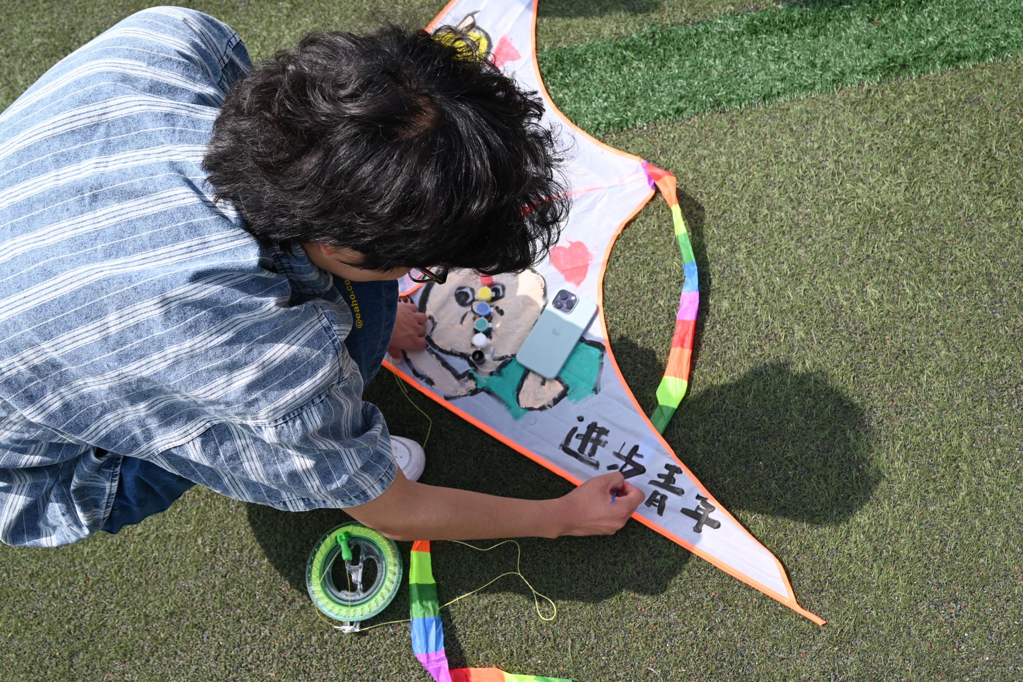 活动第二部分,同学们怀揣着对五四精神的感悟来到操场,进行了“锦绣前程,高飞远翔”放飞行动。期间,支部成员自由分组,集思广益,用画笔在风筝上精心描绘了丰富多彩的各式标语图案,最后将寄托青春理想的风筝放飞于蓝天翱翔。