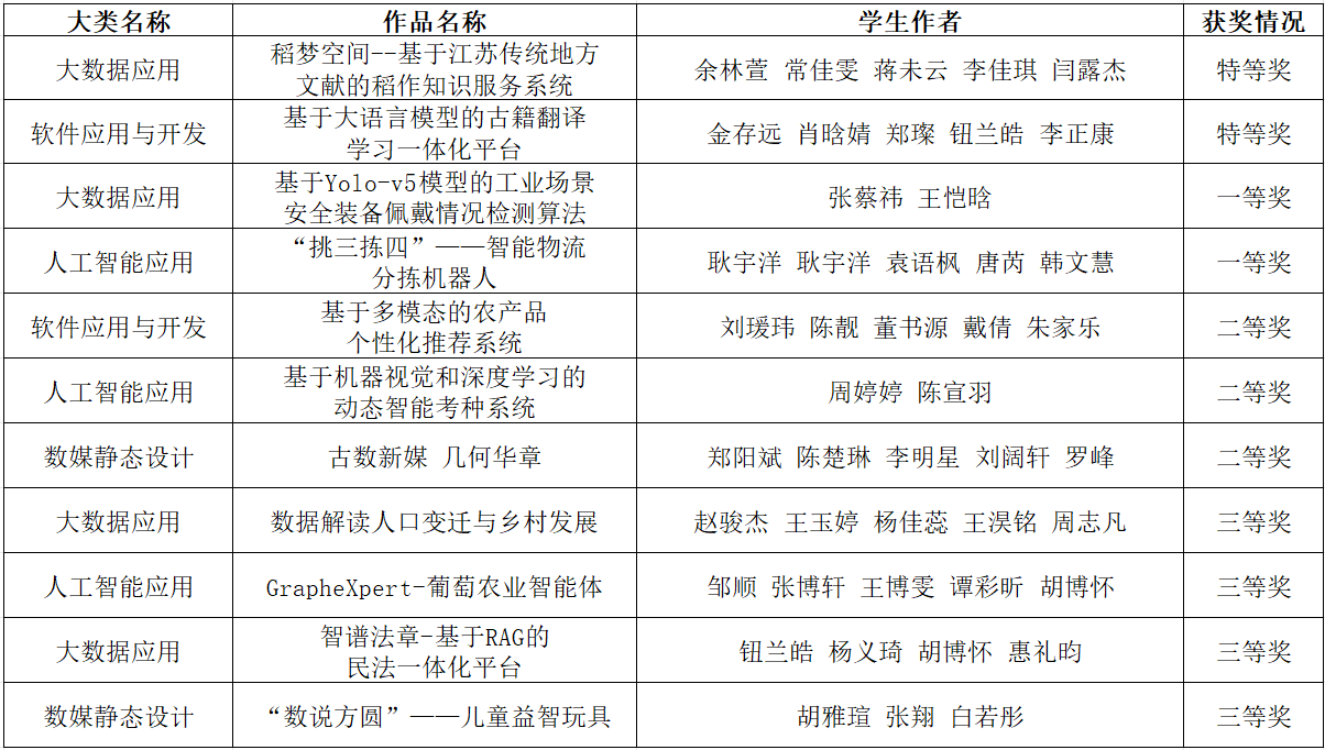 参加决赛的作品覆盖“软件应用与开发”“人工智能应用”“大数据应用”“数媒静态设计”等赛道,围绕涉农应用场景、智能装备等,提供精准化原创智慧方案。同学们沉着应对赛场的多变,展现出良好的综合素质。