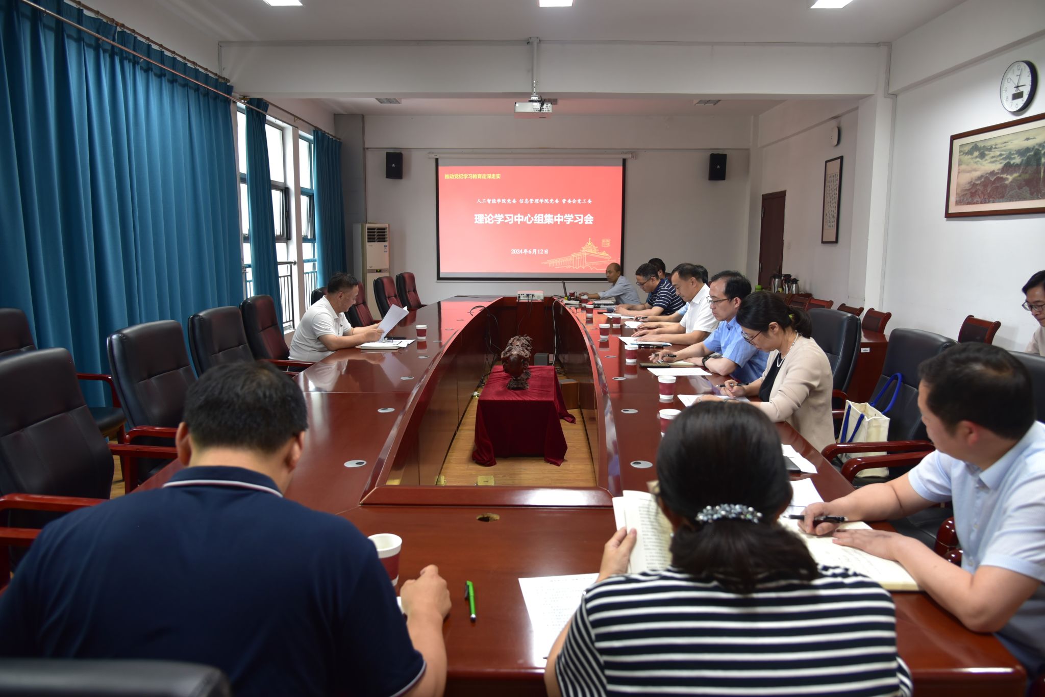 会上,学院副院长(主持工作)陆明洲领学《党纪学习教育警示案例第3期》、信息管理学院党委书记郑德俊领学《习近平总书记致信祝贺中国工程院建院30周年》、浦口校区管委会党工委书记、主任钱德洲领学《党纪学习教育警示案例第2期》等相关内容。