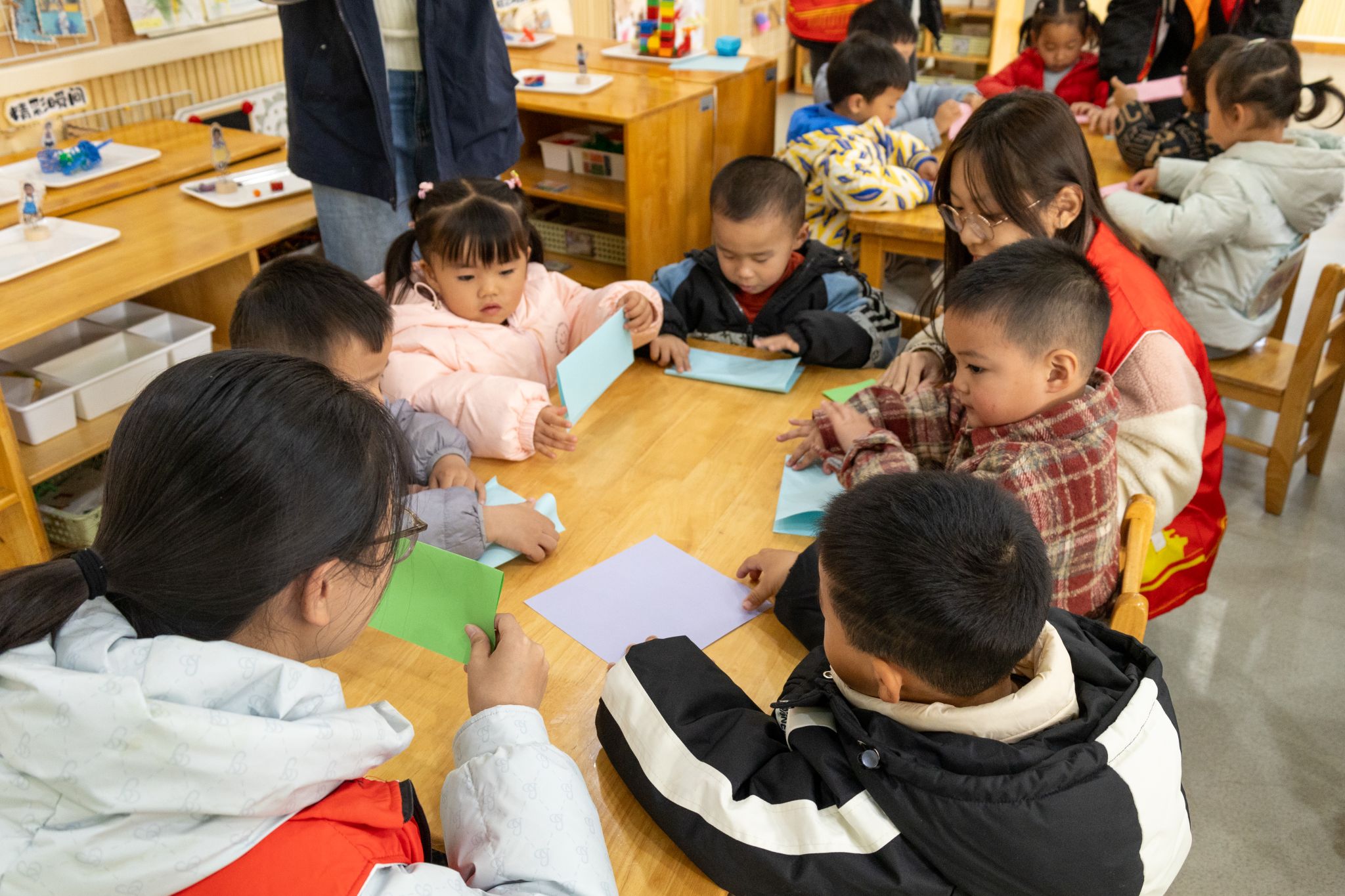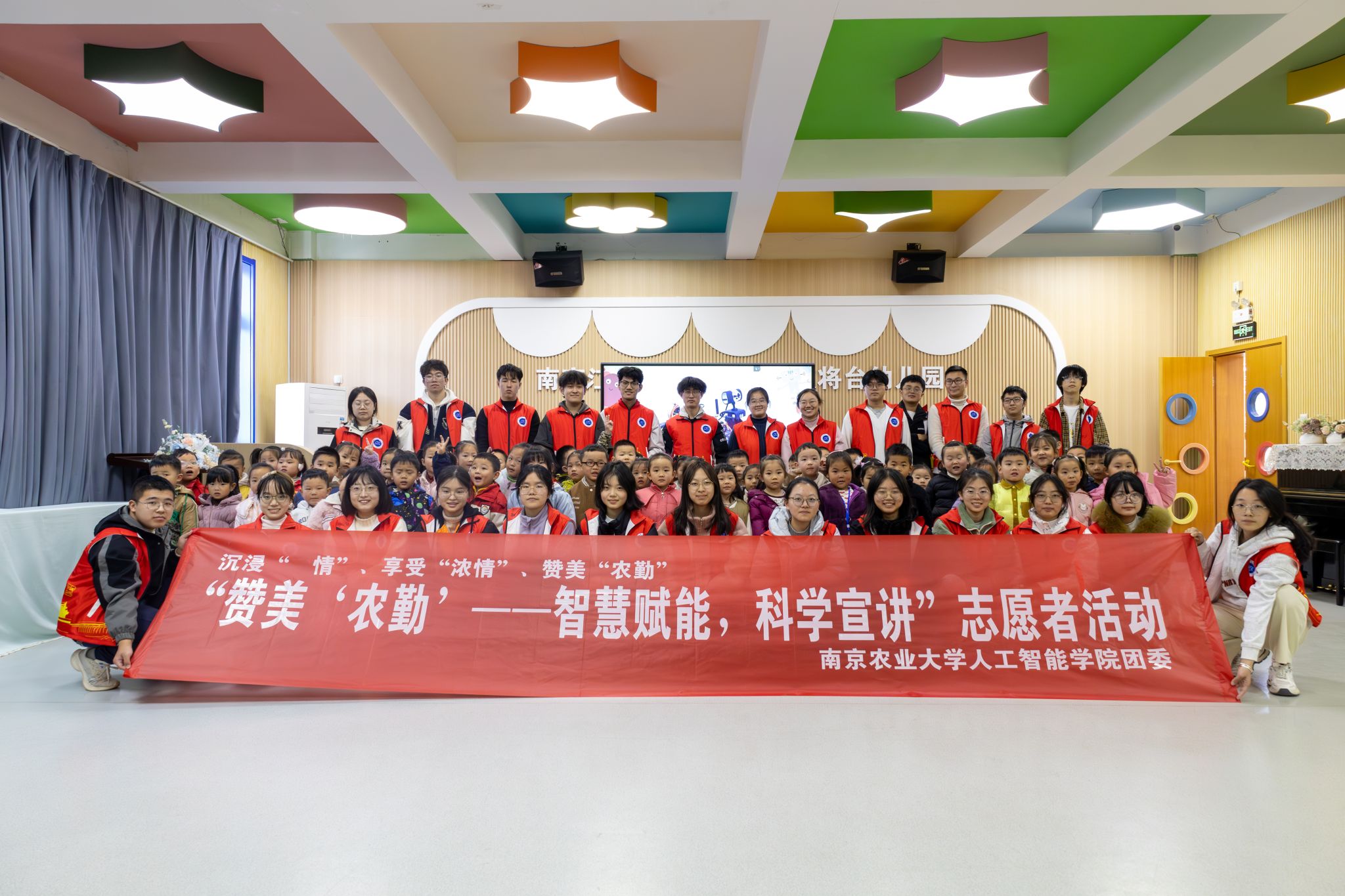 工作人员的精心组织下,志愿者们手把手地协助小朋友们动手制作纸质机器人模型,体验农业智能遥控车,志愿者用简单易懂的语言和生动的例子,为小朋友们打开了农业科技的大门,让幼儿园小朋友们在实践中学习科技知识,感受科技的魅力。活动结束后,志愿者们与幼儿园的小朋友及老师进行了合影留念。本次宣讲活动在多方密切配合下圆满结束。