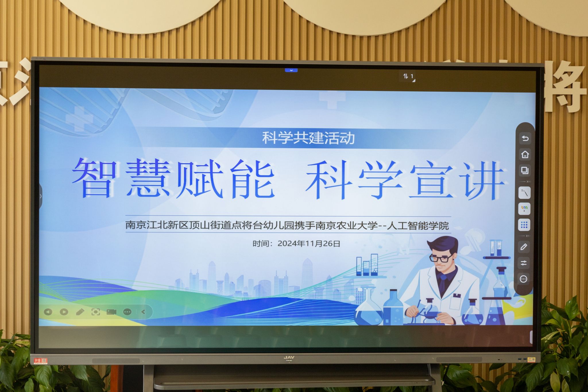 团委协同点将台幼儿园举办“赞美‘农勤’——农为民生,满怀感恩”智慧赋能科学宣讲志愿者活动。本次活动旨在通过生动有趣的科技讲解和实践操作,让孩子们近距离感受农业科技的魅力,培养他们的创新意识和实践能力。