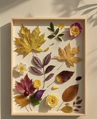 大自然中的每一片叶子、每一朵花瓣都是给我们的馈赠。同学们充分发挥创意与想象力,利用落叶、花瓣等自然素材创作艺术贴画,每一幅画都是你对自然的回礼。越是贴近自然,就越能感到生活的美好哦。