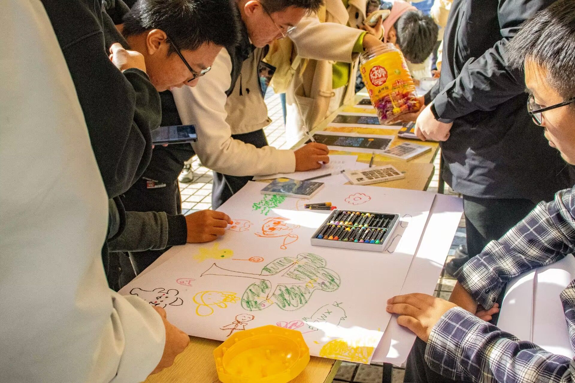 一笔接着一笔,每人接力传递,描绘美好。活动现场气氛热烈而和谐,协作与创意的火花激情碰撞,绽放出一幅幅精彩的画卷。大家尽情释放自己的想法与灵感,生动活泼的画面跃然纸上,尽显大学生的奇思妙想!