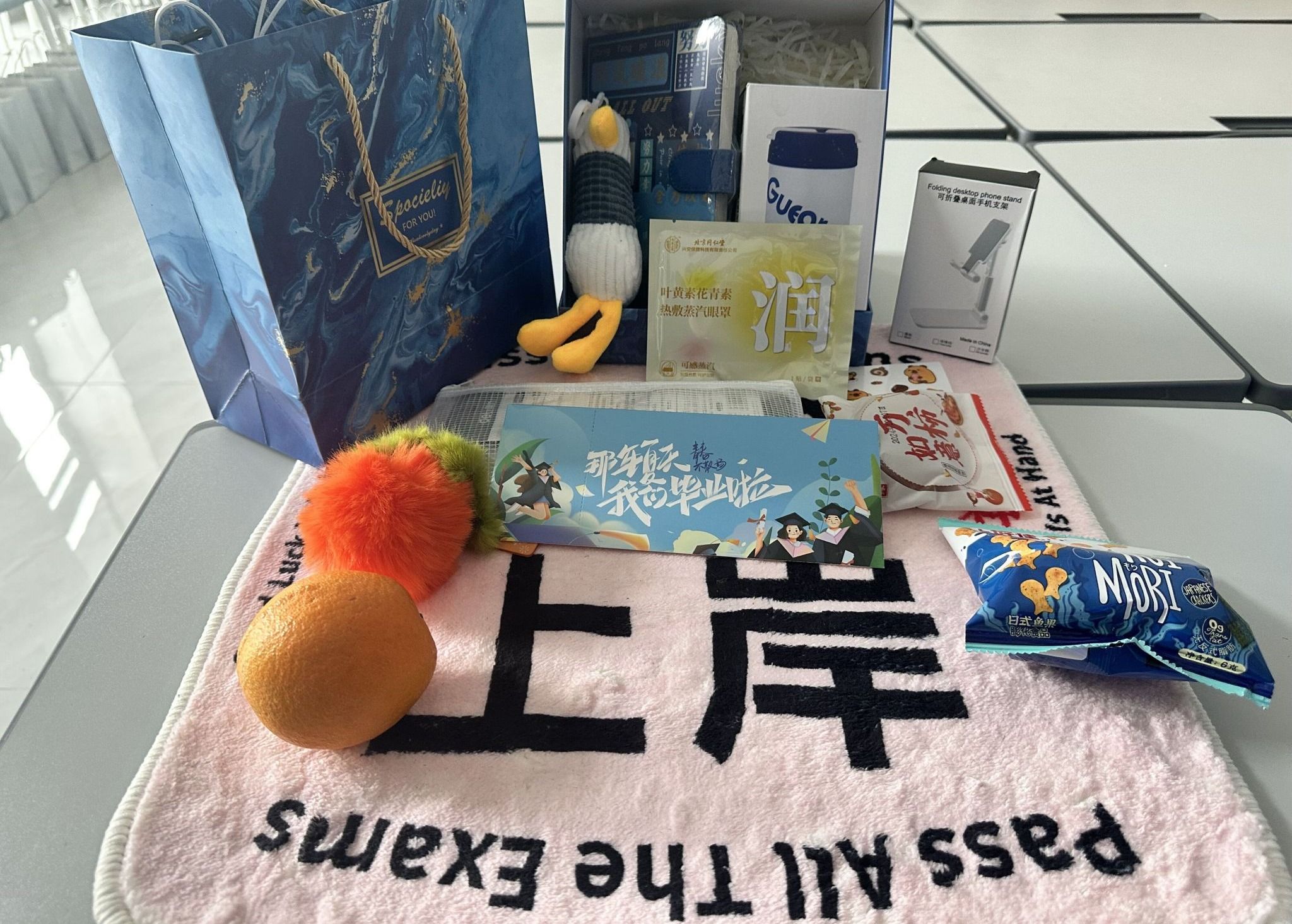 副院长(主持工作)陆明洲、院党委副书记吕一雷、院学生工作办公室主任湛斌、院本科生辅导员于佳琪等老师现场为考研学子颁发礼品。心想事“橙”伴手礼盒、“坐等上岸”坐垫、柿子钥匙扣等小礼物,不仅寄托了学院领导和老师对考研学子的深切期望和关怀,更预祝同学们能够一战“橙”硕、“坐等上岸”、“柿柿”如意。一句句暖心的叮嘱,一件件贴心的礼物,让考研学子在寒冷的冬日里感受到了来自学院师生的浓浓暖意与支持。