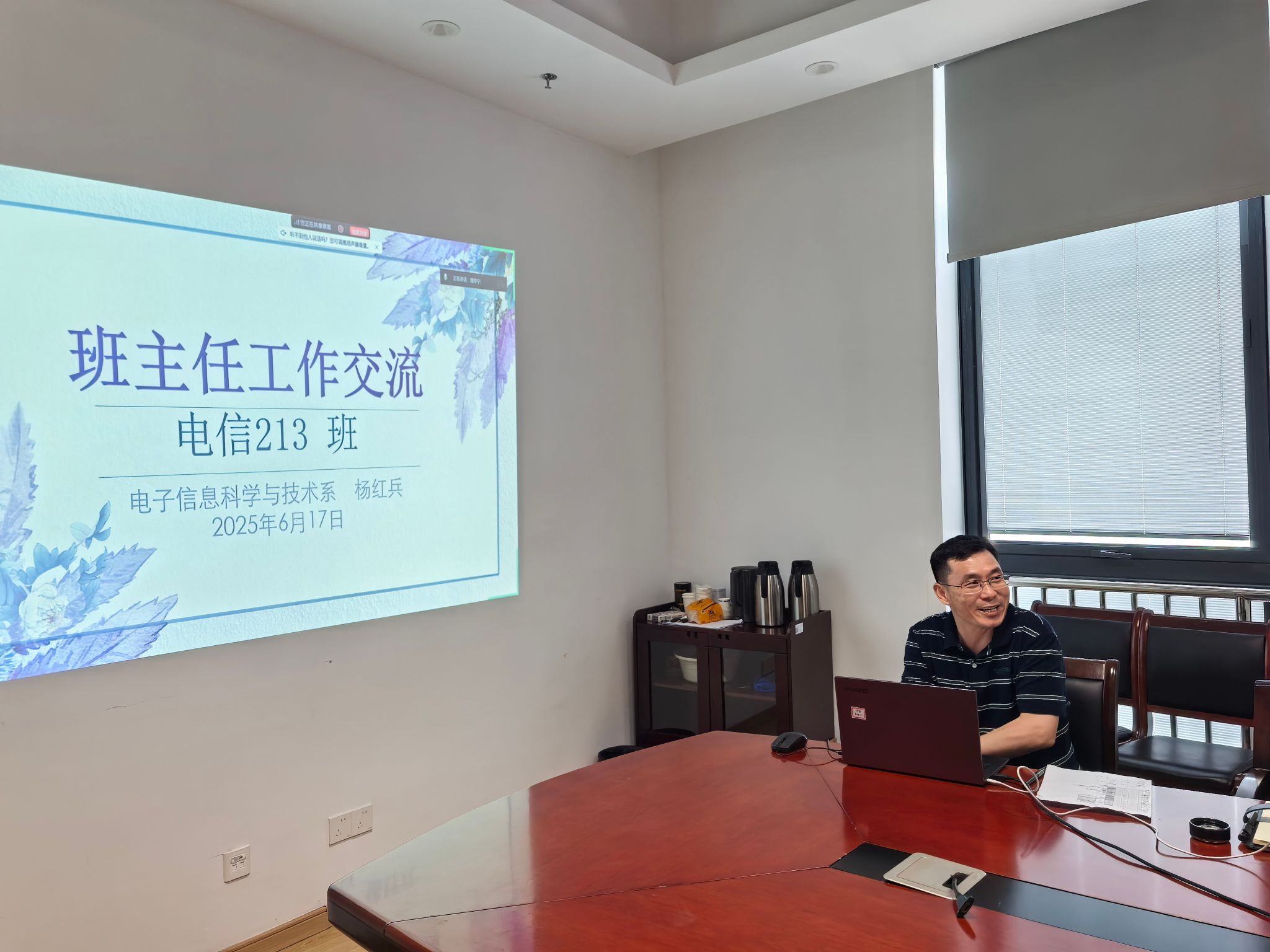 在经验分享环节,2025届优秀班主任杨红兵结合带班实践,从三方面分享心得:一是强化思想引领与行为示范,分阶段开好主题班会;二是扎实推进班级学风建设;三是深耕课堂主阵地,以“良师益友”的角色践行育人使命。