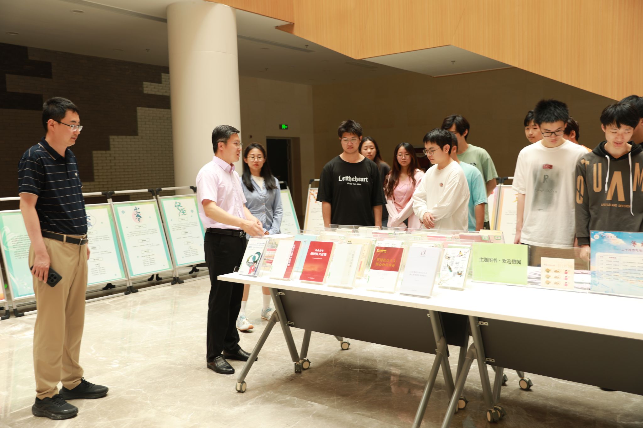 )本科生辅导员魏宇宁携20余名学生参展。本次展览融合“悦读社会主义核心价值观”与“二十四节气文化”两大主题,通过多元展陈形式,带领观众领略传统文化与时代精神的交织辉映,展览将持续至6月20日。