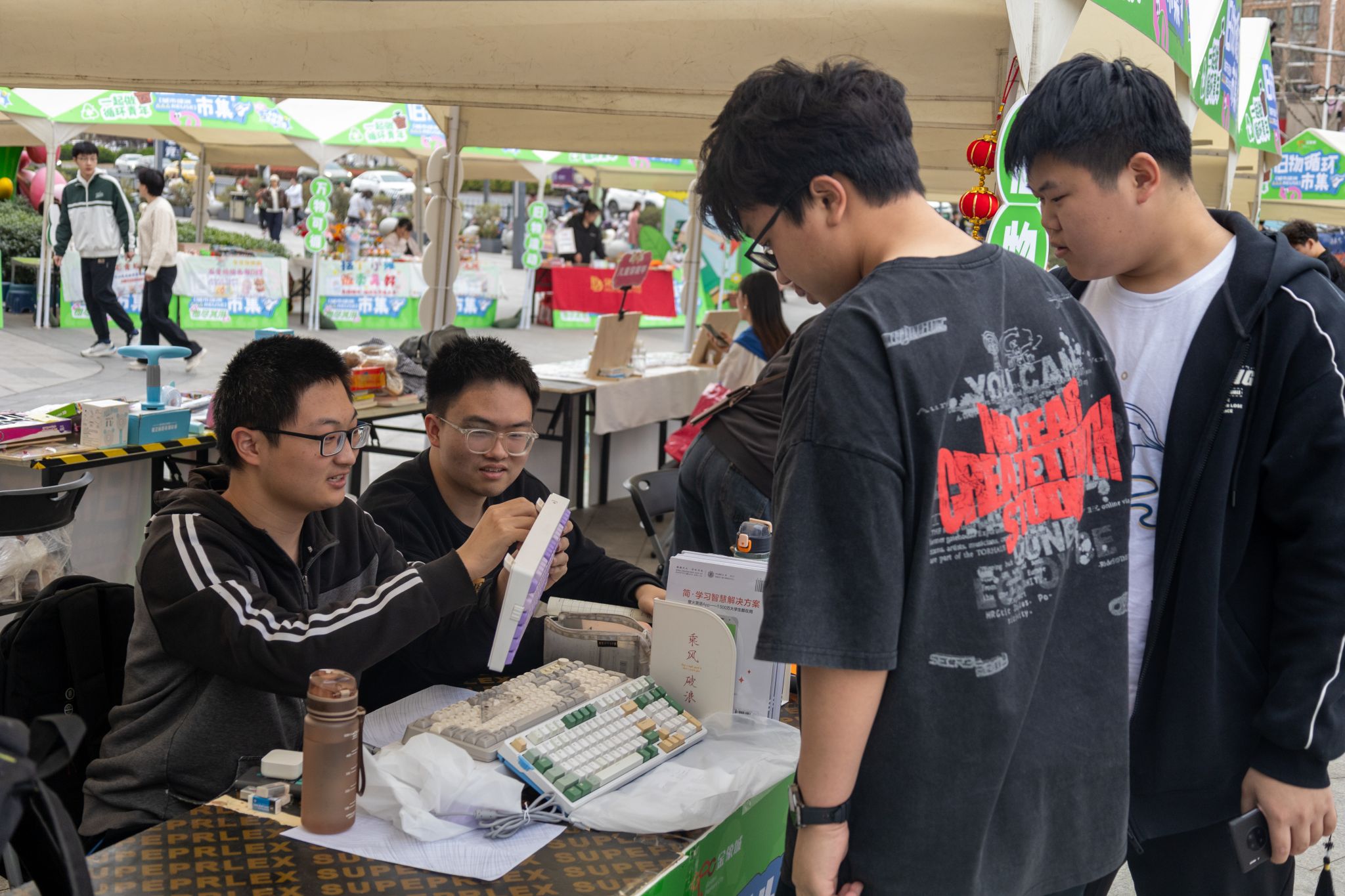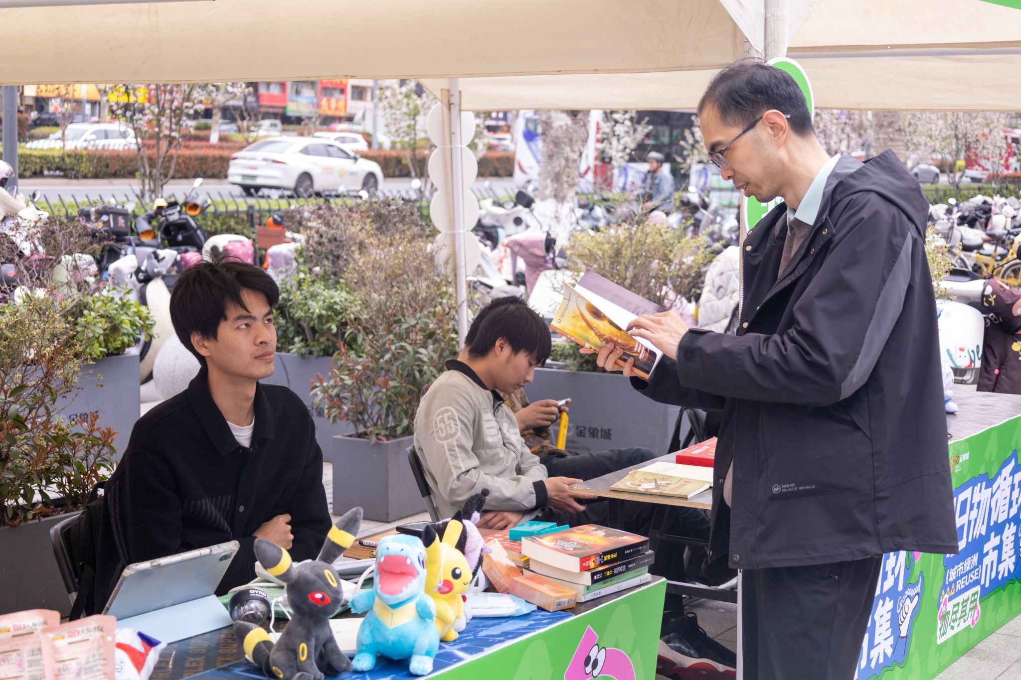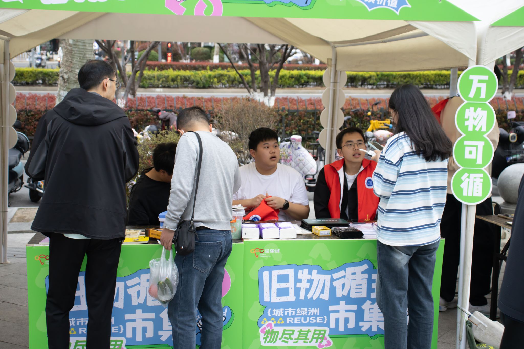 活动期间志愿者们十分热情地为市民分享着旧书扉页的批注故事、小家电的使用窍门,流转间既延续了物品价值,更传递着可持续生活智慧。活动现场交织着知识科普的专注神情与达成交易的会心微笑,融融暖意中悄然播撒着绿色新风尚的种子。