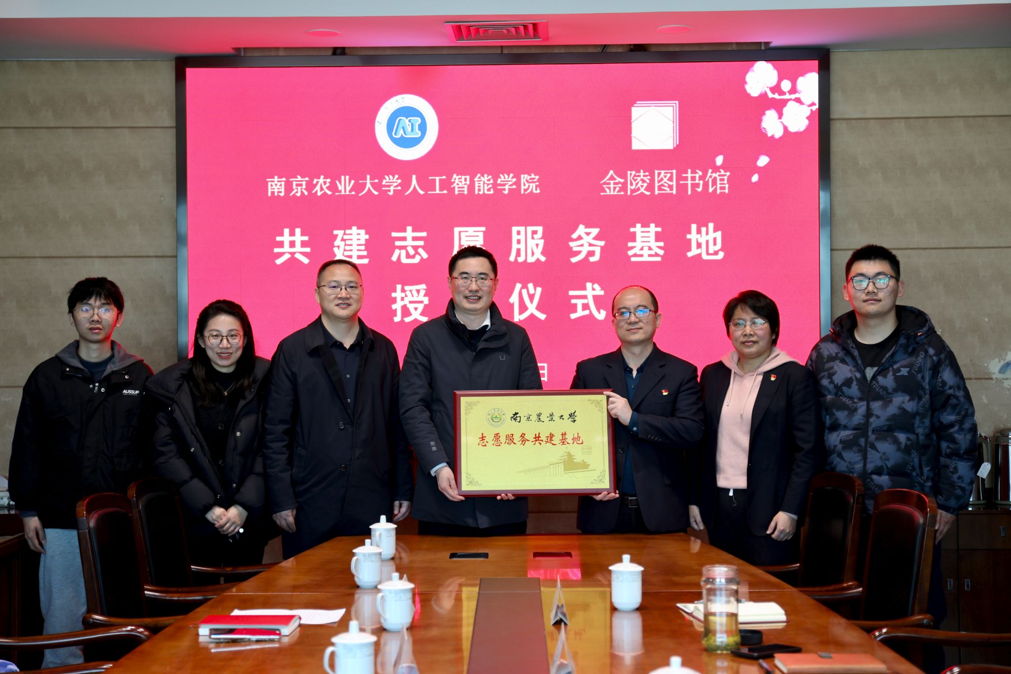 与金陵图书馆洽谈智慧助残志愿服务项目,挂牌成立"志愿服务共建基地"。学院党委副书记吕一雷、教授卢伟、辅导员魏宇宁,金陵图书馆党总支书记尹士亮、分馆建设部主任孙振强、分馆建设部张俊等出席签约仪式,双方就科技助残项目开发、志愿服务体系构建达成深度合作意向。