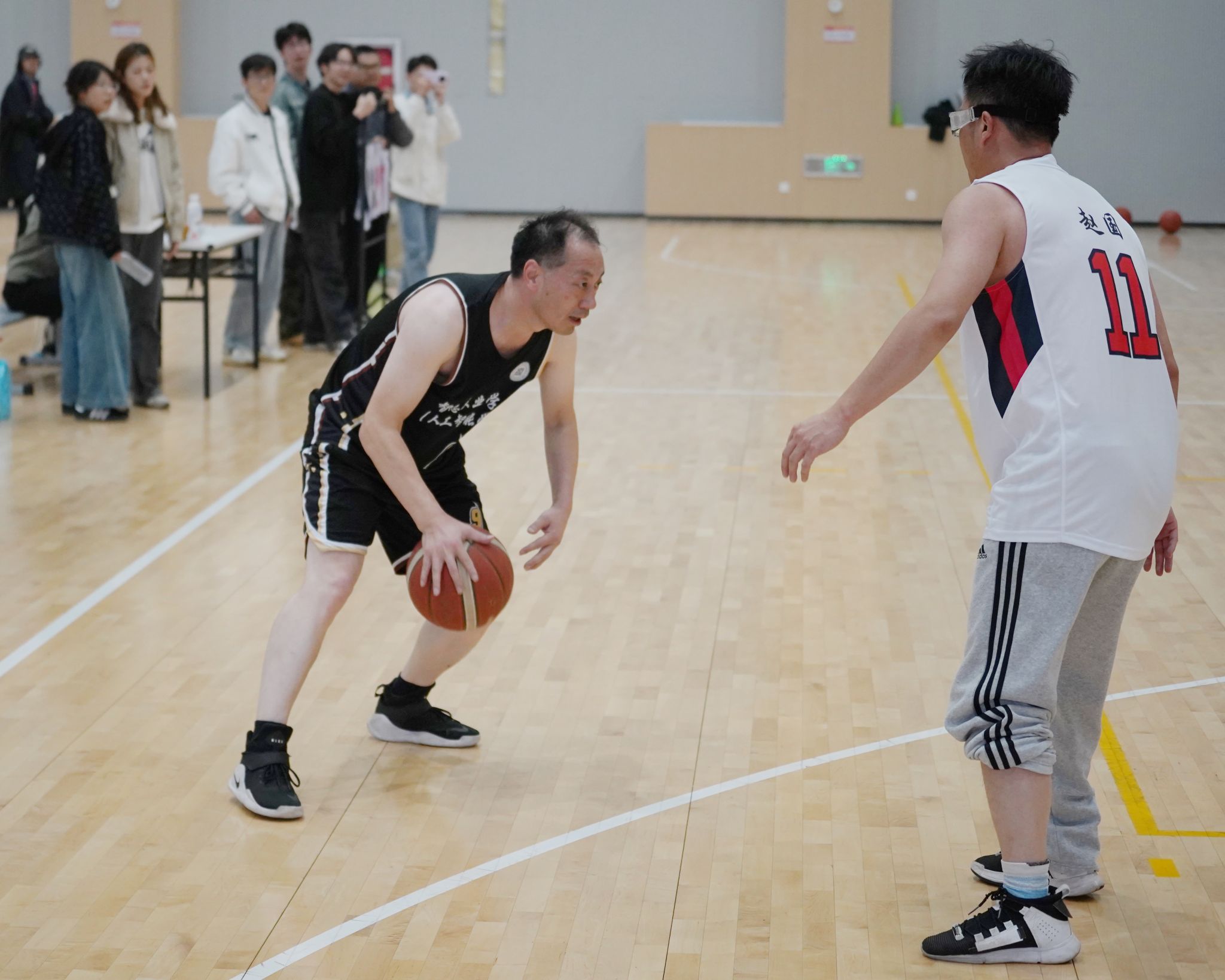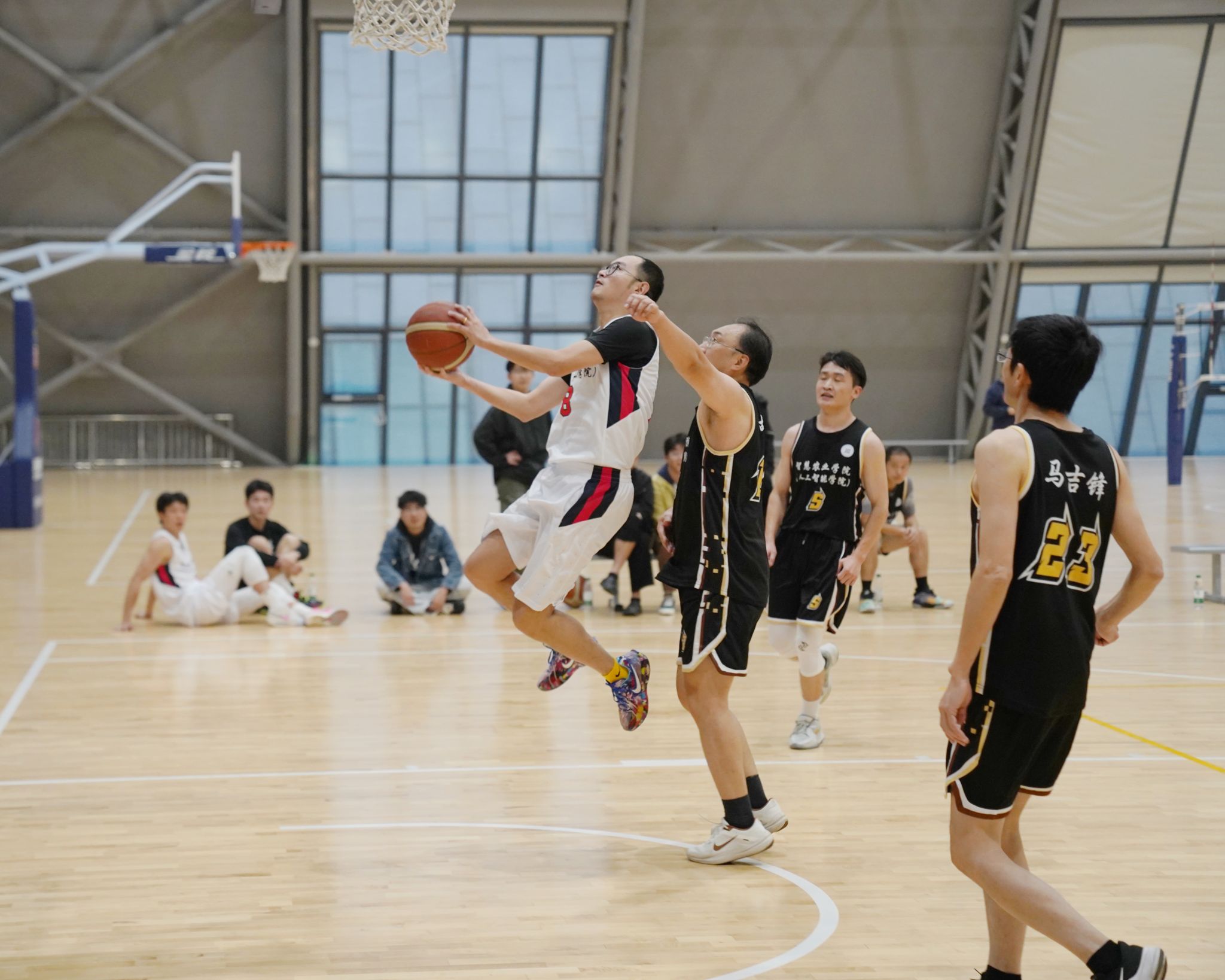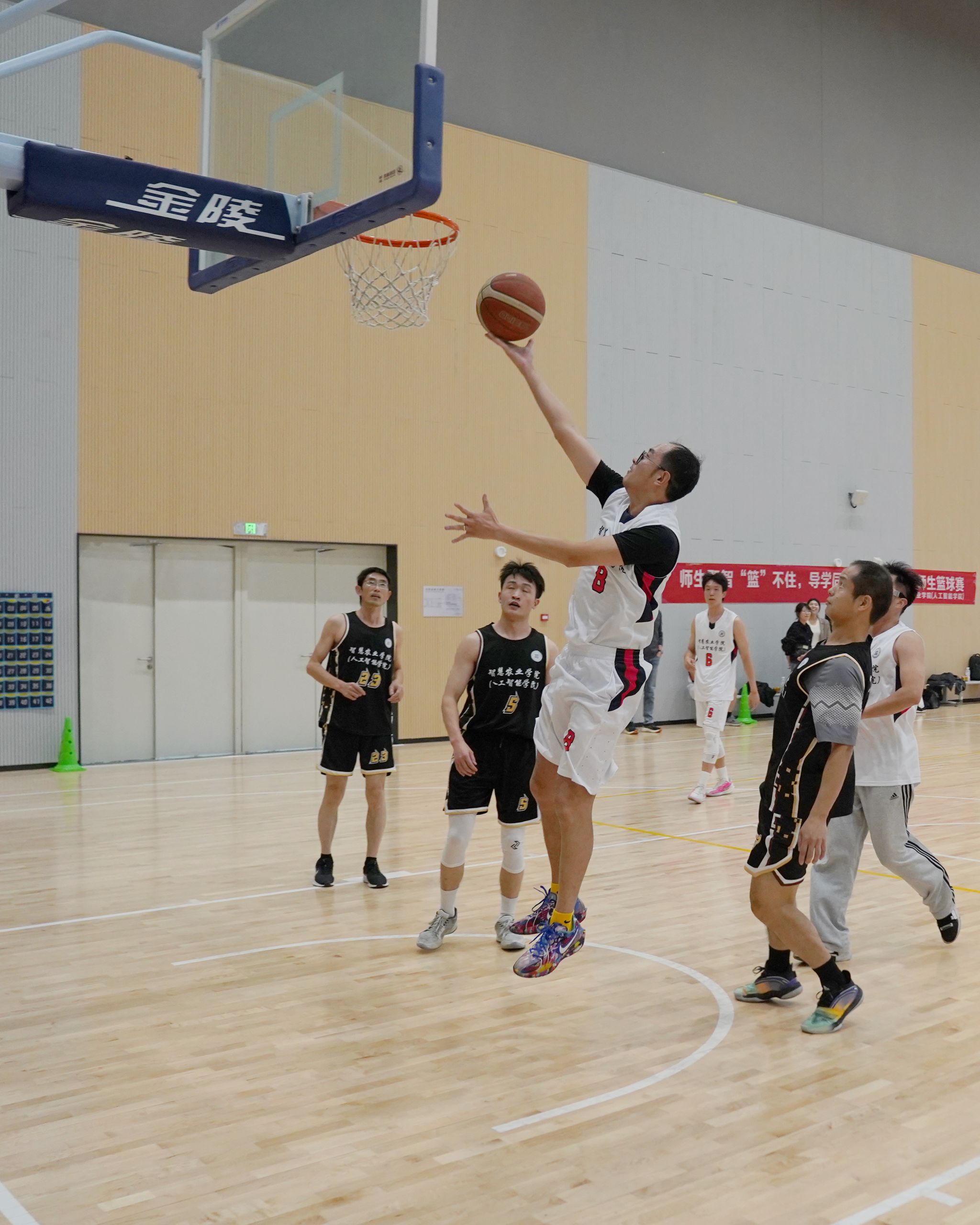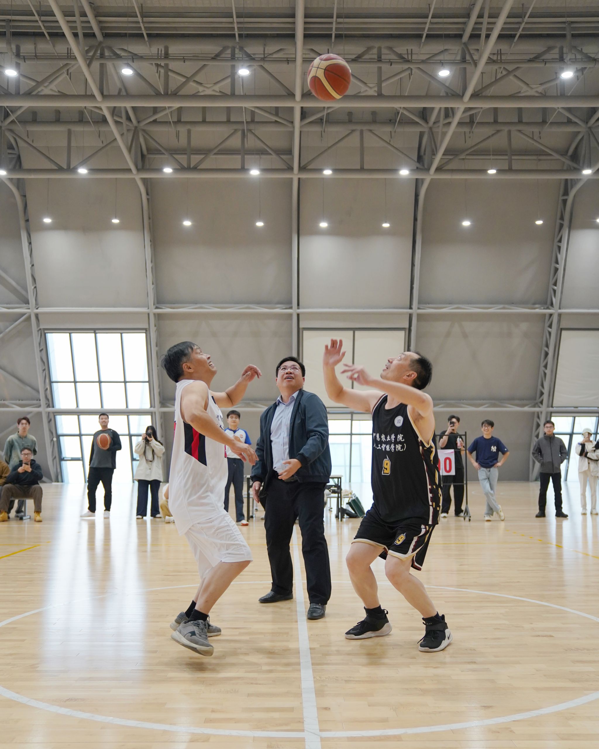 随着林江辉副部长开球,比赛正式点燃!平日里在实验室深耕、讲台授业的老师,与课堂求知、项目创新的学子换上球衣,化身默契队友。A队(李骅书记率领)与B队(田永超院长领衔)四节交锋,每一秒都精彩拉满:A队首节上篮拿下首分,瞬间引爆全场;研究生球员灵活突破、利落得分,尽显青春锐气;B队一记精准中投空心入网,引得观众欢呼雷动,将气氛推向高潮。