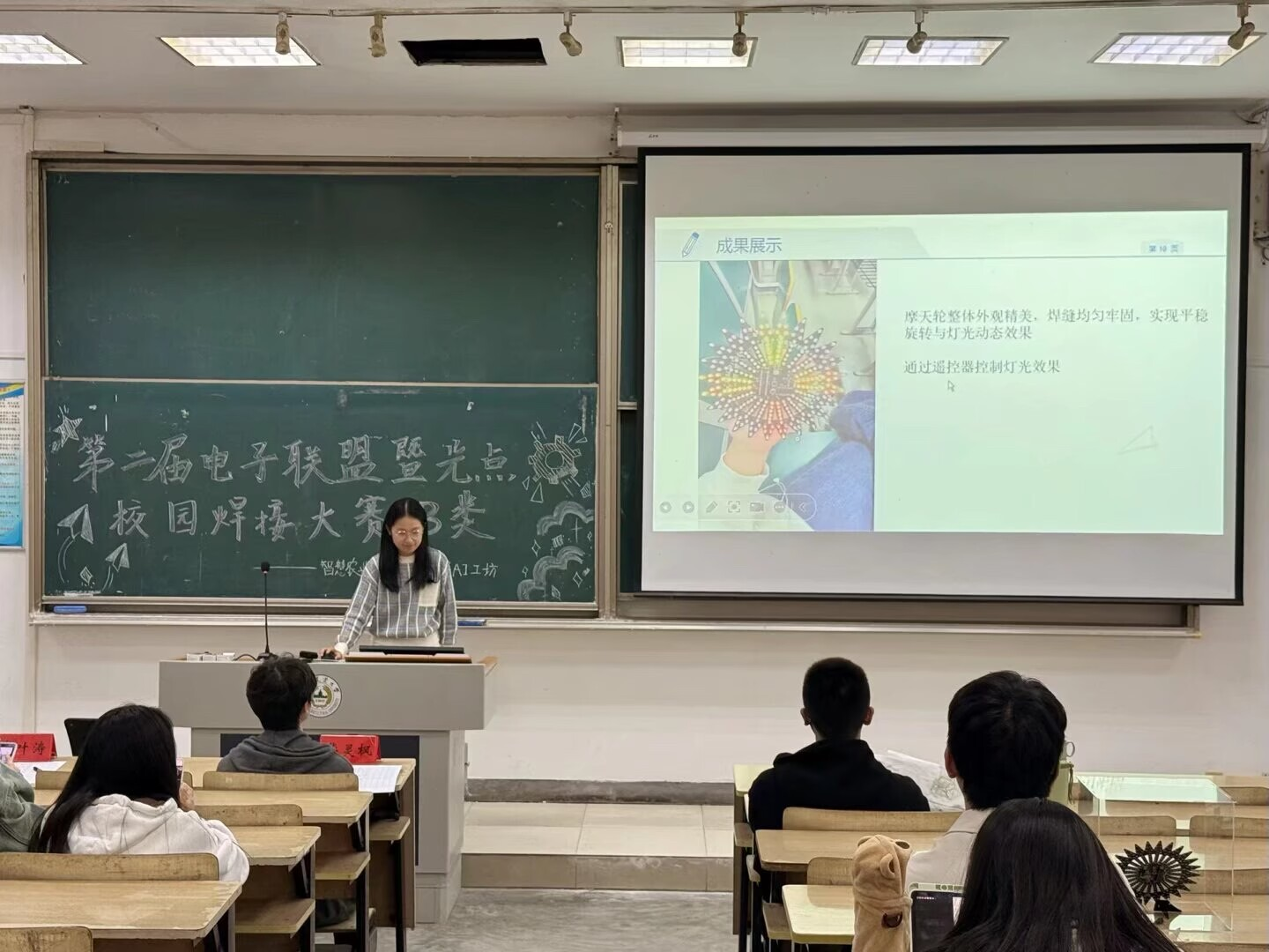 )AI工坊于浦口校区汇贤楼C102与C202教室举办第二届电子联盟暨光点校园焊接大赛决赛。本次比赛特邀往届优秀选手担任评委,共同见证新一届选手的精彩表现。
