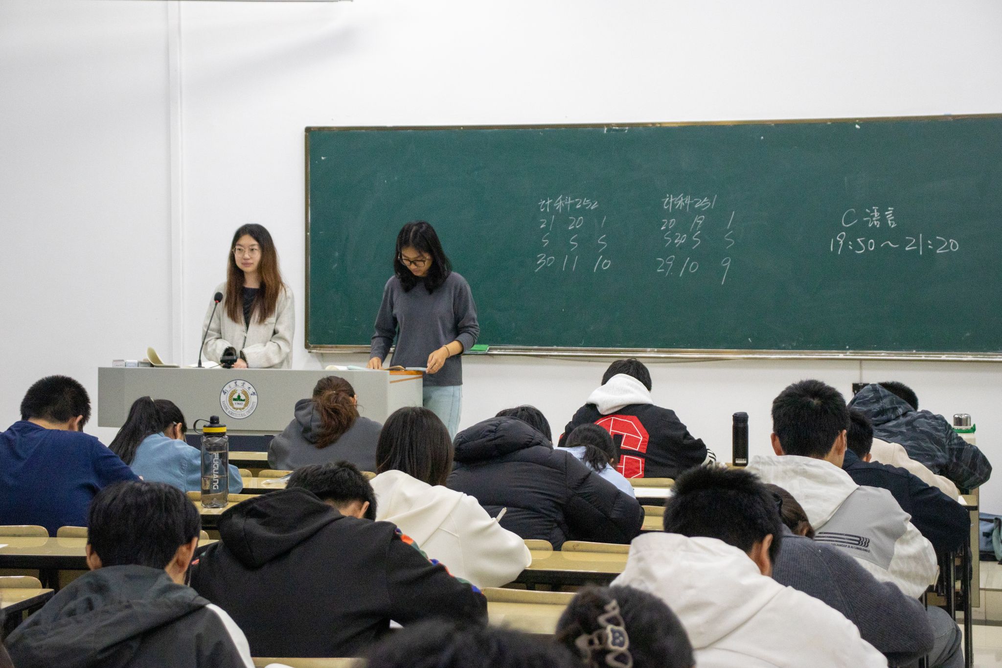 考前,院学生会对接命题教师完成试卷印制与保密管理,同步落实监考安排及评卷计划,提供坚实后勤支撑。考试分三场进行:11月15日19:00-21:00高等数学考试,16日18:30-19:30学生手册考试、19:50-21:20C语言考试。期间,考生态度认真、纪律严明,展现扎实学识与良好学风;监考人员履职尽责,保障考试规范公正。考后工作人员有序组织离场及考场整理。