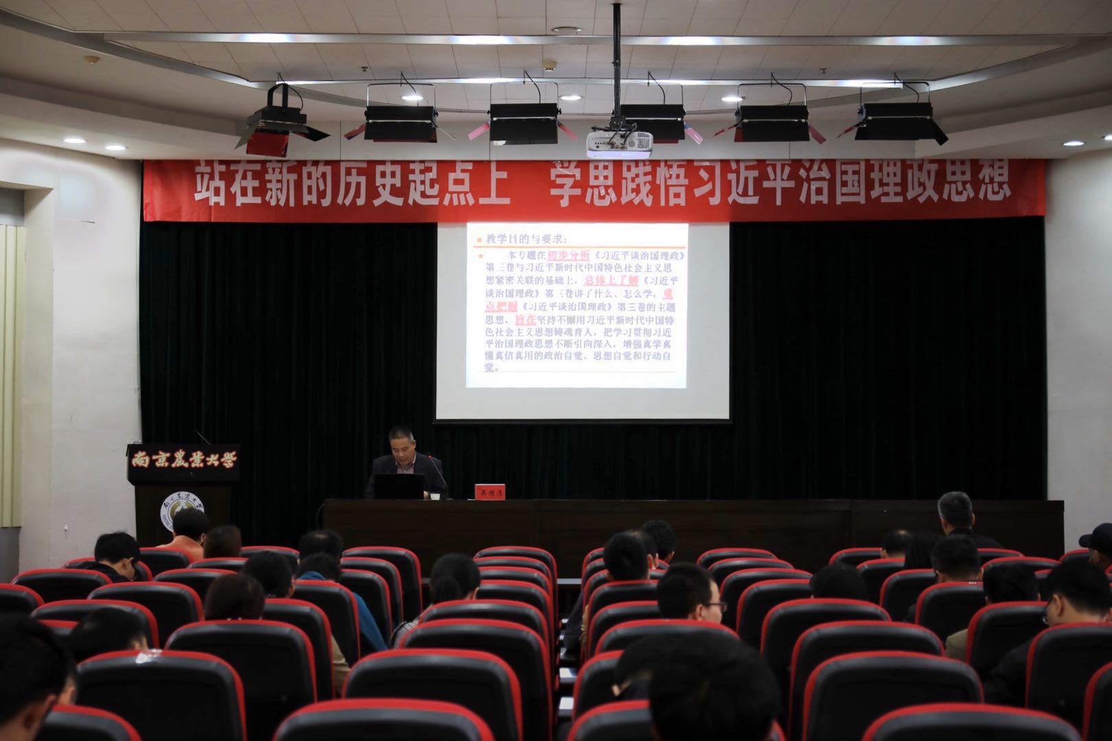 党委在浦口校区图书馆报告厅举办《习近平谈治国理政》(第三卷)专题学习报告会。学院全体教职工及部分学生干部参会学习,报告会由学院党委副书记(主持工作)沈明霞主持。