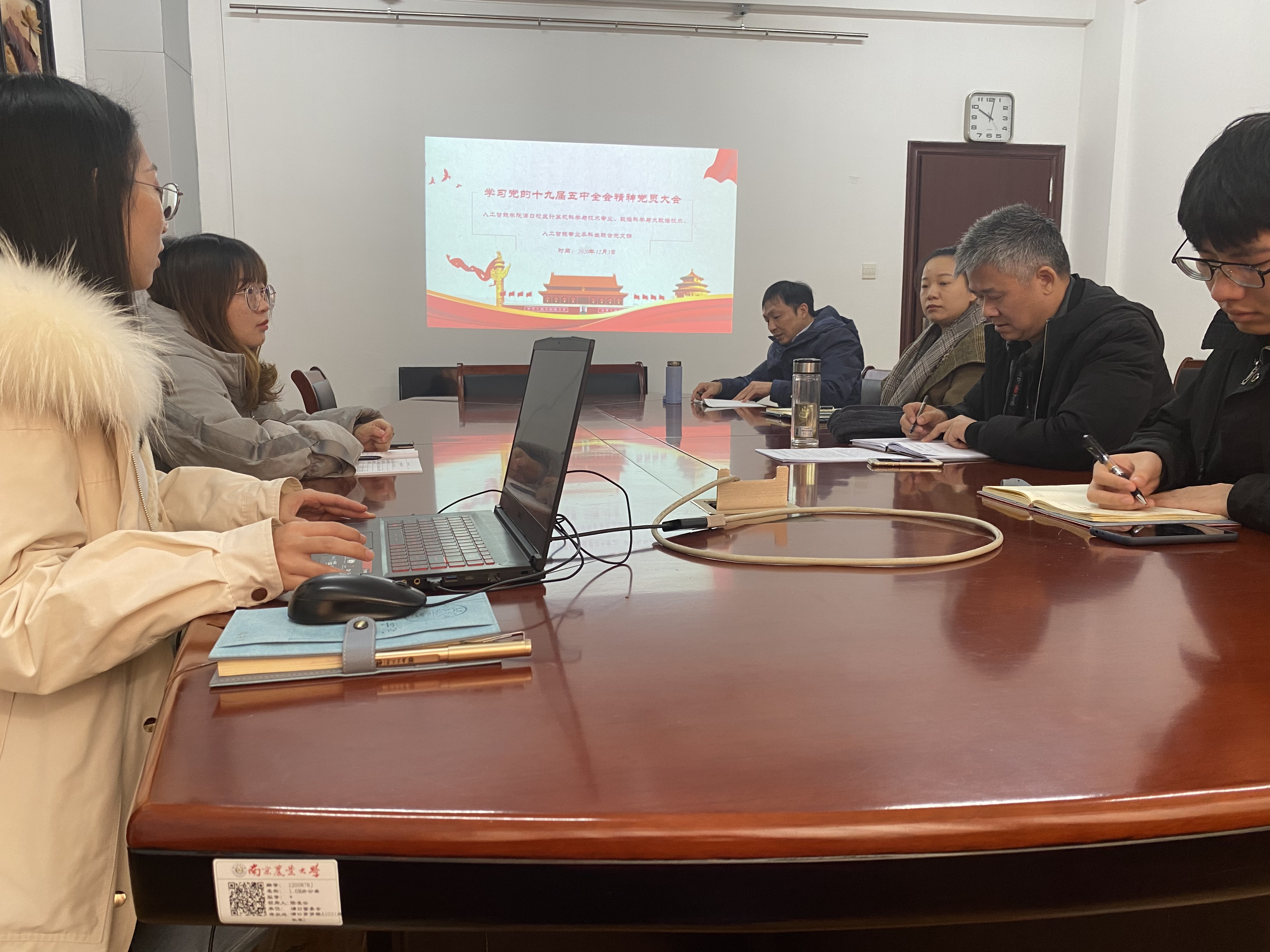 浦口校区计算机科学与技术、数据科学与大数据技术、人工智能专业本科生联合党支部召开党员大会,深入学习贯彻党的十九届五中全会精神。会议由支部书记魏宇宁主持,张和生等全体党员参加。