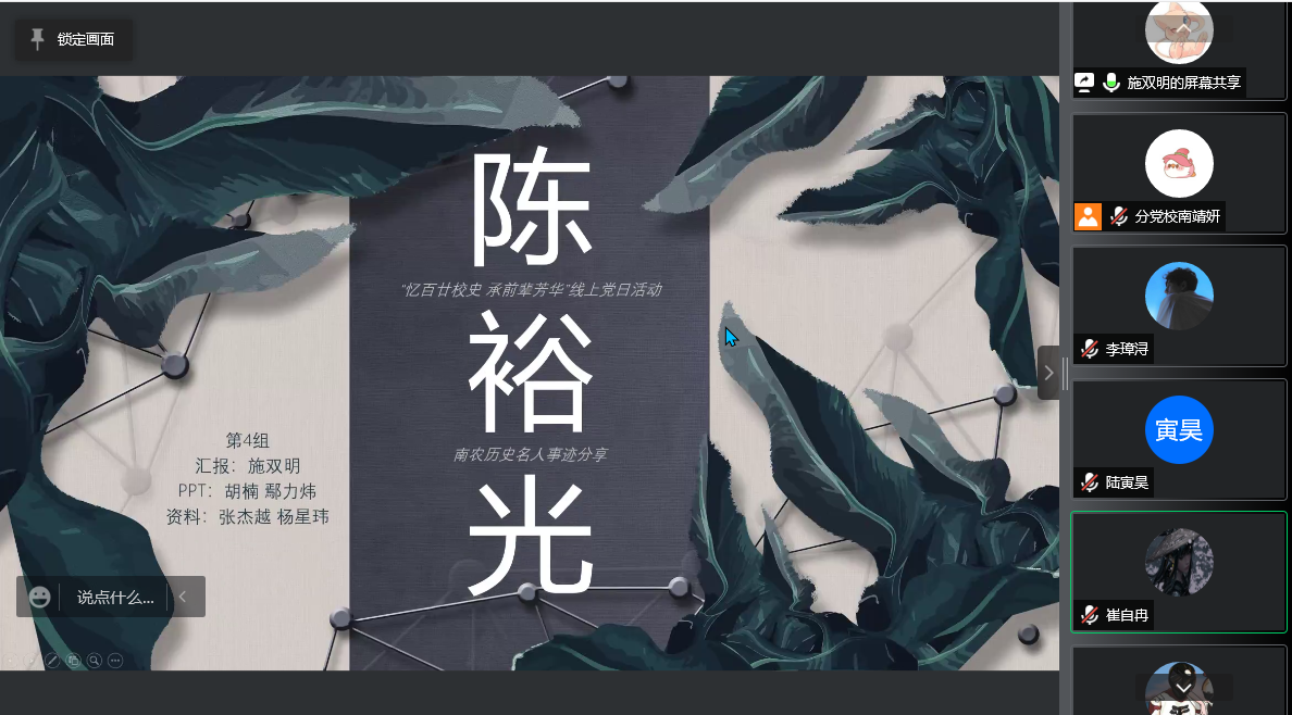 分党校开展了“忆百廿校史,承前辈芳华”线上主题党日活动。本次党日活动旨在通过南农名人事迹分享的方式,引导学院新发展党员共同感悟南农精神,明确使命担当。