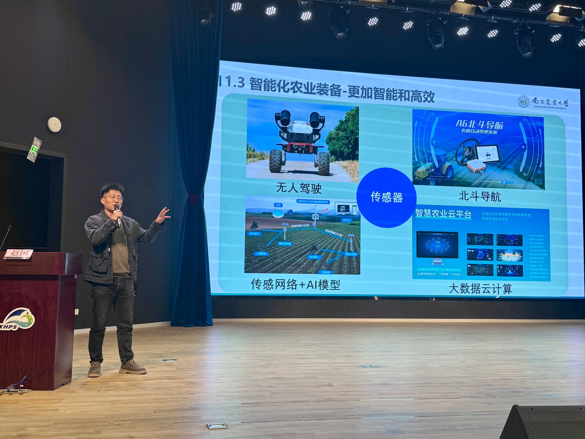 随后,赵国为星海实验高级中学的师生带来了一场精彩纷呈的科普讲座。讲座以《传感器技术引领农业智能化新时代》为核心,结合当下科技热点,深入浅出地介绍了人工智能领域的前沿知识和发展动态。通过生动的图片和精彩的视频将抽象的科学知识变得直观易懂,让学生对农业与人工智能的融合有了全新的认识与深刻的理解。在互动环节,赵国与同学们围绕“智慧农业”等话题展开了热烈交流,并鼓励学生要勇于探索、敢于创新,在科学的道路上不断追求真理。