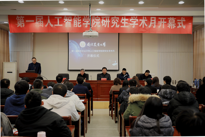 院研究生会执行主席周子俊陈述了学术月活动安排,具体包括第十七届研究生神农科技文化节之“我与专家面对面”、“名师伴你行”学术沙龙、国奖分享交流会、就业指导座谈会、第一届本研交流会之“谈学说AI,研途引航”以及闭幕式暨学术月总结会六项活动,并鼓励研究生同学们踊跃参与、积极学习。