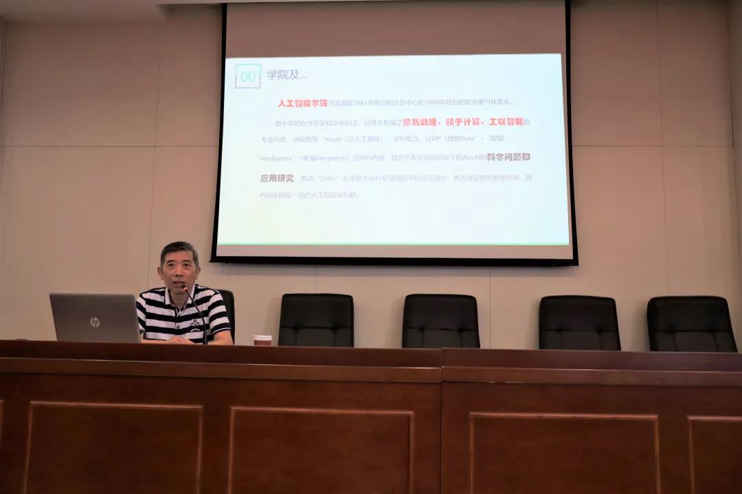 的专业设置、研究方向以及科研成就。他寄语研究生新生保持“一心向学”的态度,着力将人工智能与农业相融合,将科学问题和应用研究结合,展现出厚载数据,精于计算,工以智能的学科特色。