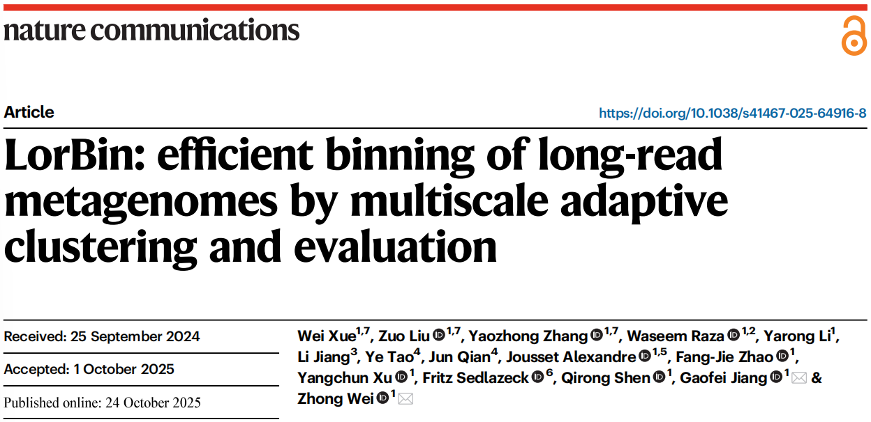 薛卫副教授BioAI实验室与资环学院沈其荣院士团队LorMe实验室的交叉学科研究成果《LorBin: Efficient binning of long-read metagenomes by multiscale adaptive clustering and evaluation》。该工作聚焦生物信息学底层算法,以三代宏基因组分箱为切入点,研发了多尺度自适应聚类与迭代评估算法LorBin,解决了宏基因组研究过程中重构单菌基因组数量少、质量差的共性难题。该研究积极响应了麻豆tv