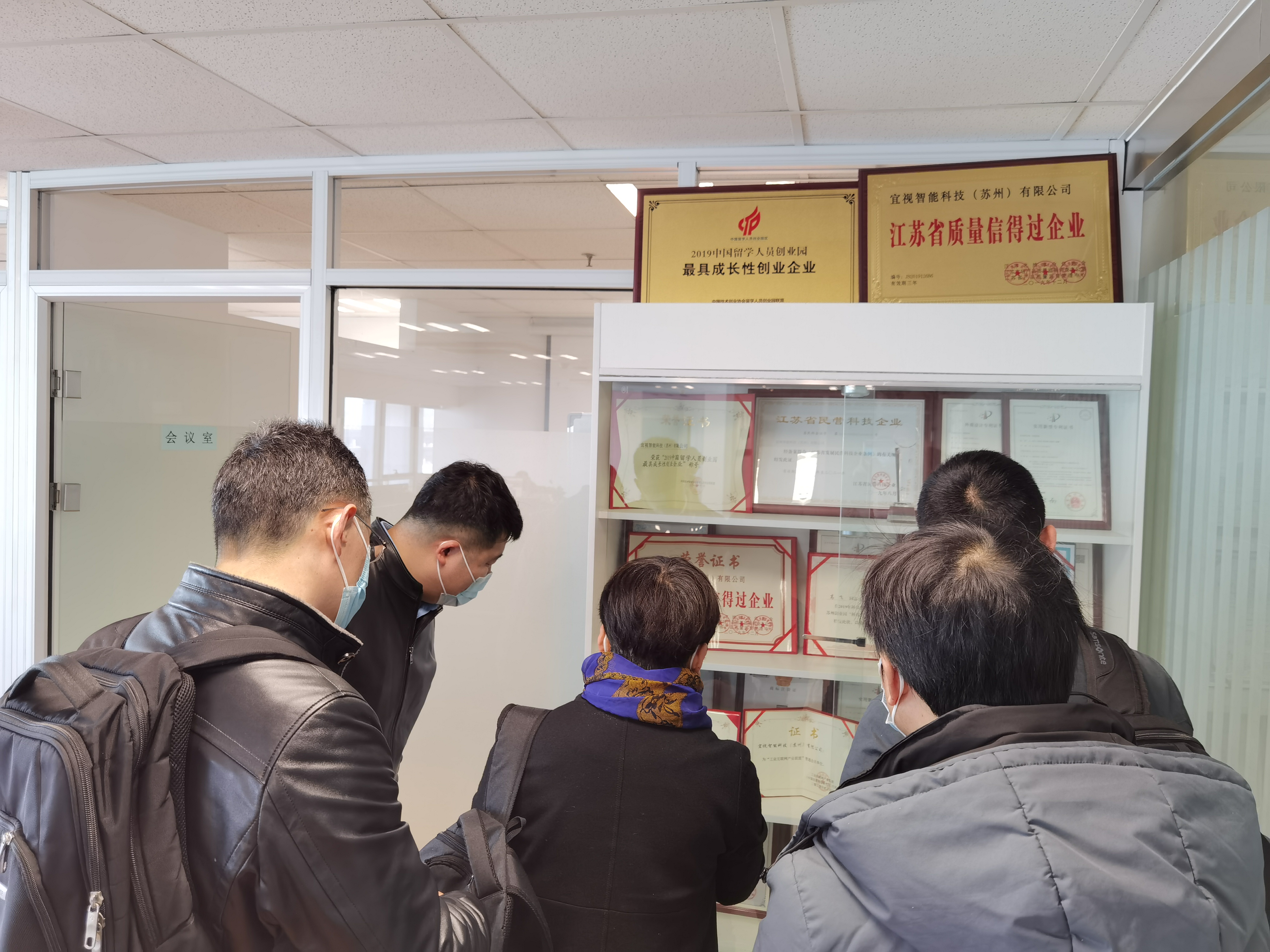 2005届校友创办的宜视智能科技(苏州)有限公司开展走访交流活动,学院党委副书记沈明霞、电子信息系主任李林、计算机系教授陆明洲、电子信息系讲师刘龙申、学生工作办公室辅导员湛斌一行五人参与此次走访。