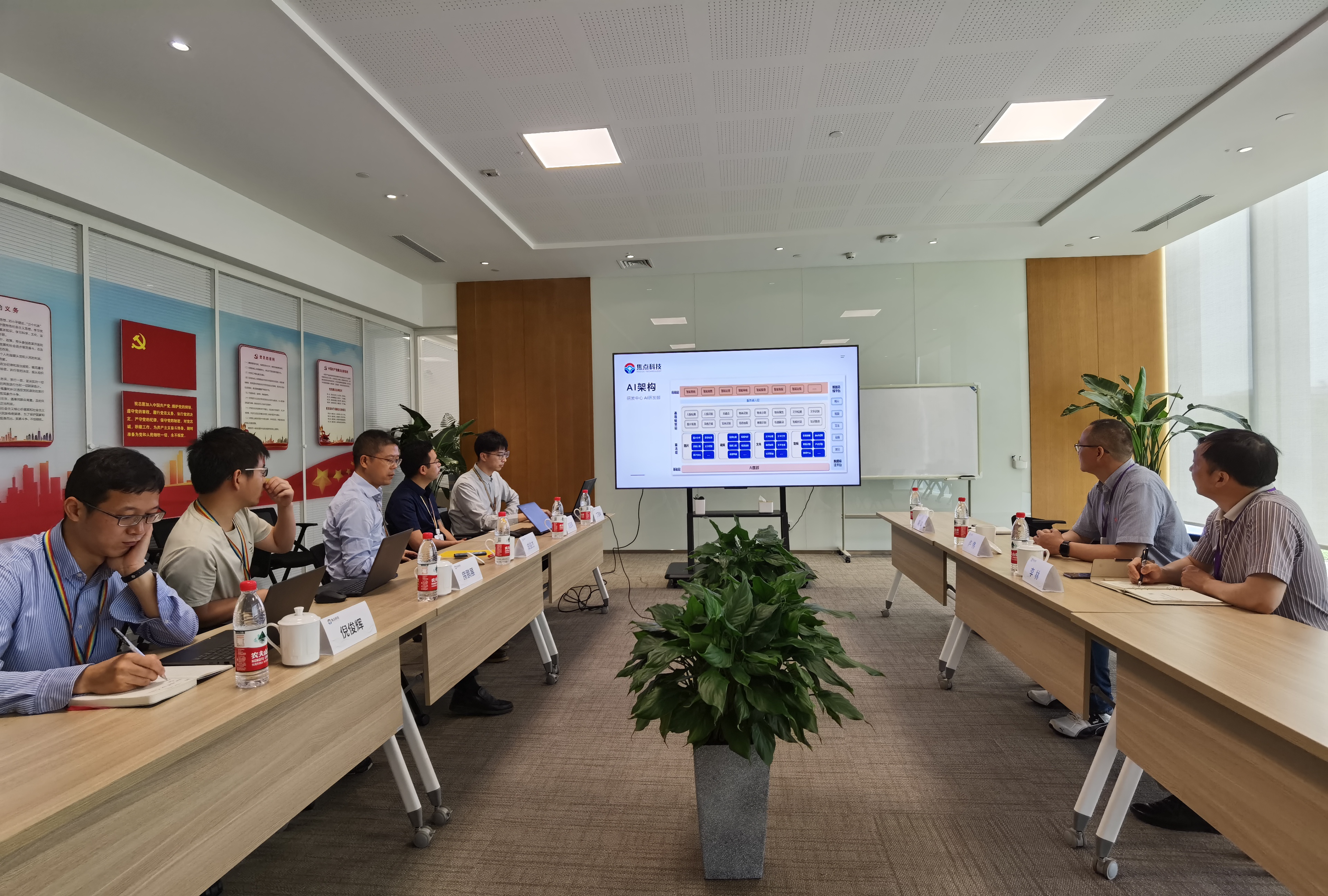 参观后,公司领导在会议室与麻豆tv 一行人展开交流。首先,成俊杰就公司的发展历史、经营理念、旗下品牌产品等方面展开介绍,着重结合麻豆tv 特点介绍公司AI方面的重要技术、产品以及研发突破方向。其次,卢伟就麻豆tv 的基本情况、科研团队及其方向、本研人才培养成果等方面进行了介绍。随后,双方进一步就产学研合作、AI领域项目深度合作、就业实习基地共建、高水平校园科技竞赛创立等诸多方面进行了探讨交流。双方一致认同,此次交流意义重大,院企双方将以此为契机,深入推进合作事宜,助推“协作、发展、共赢”新局面。
