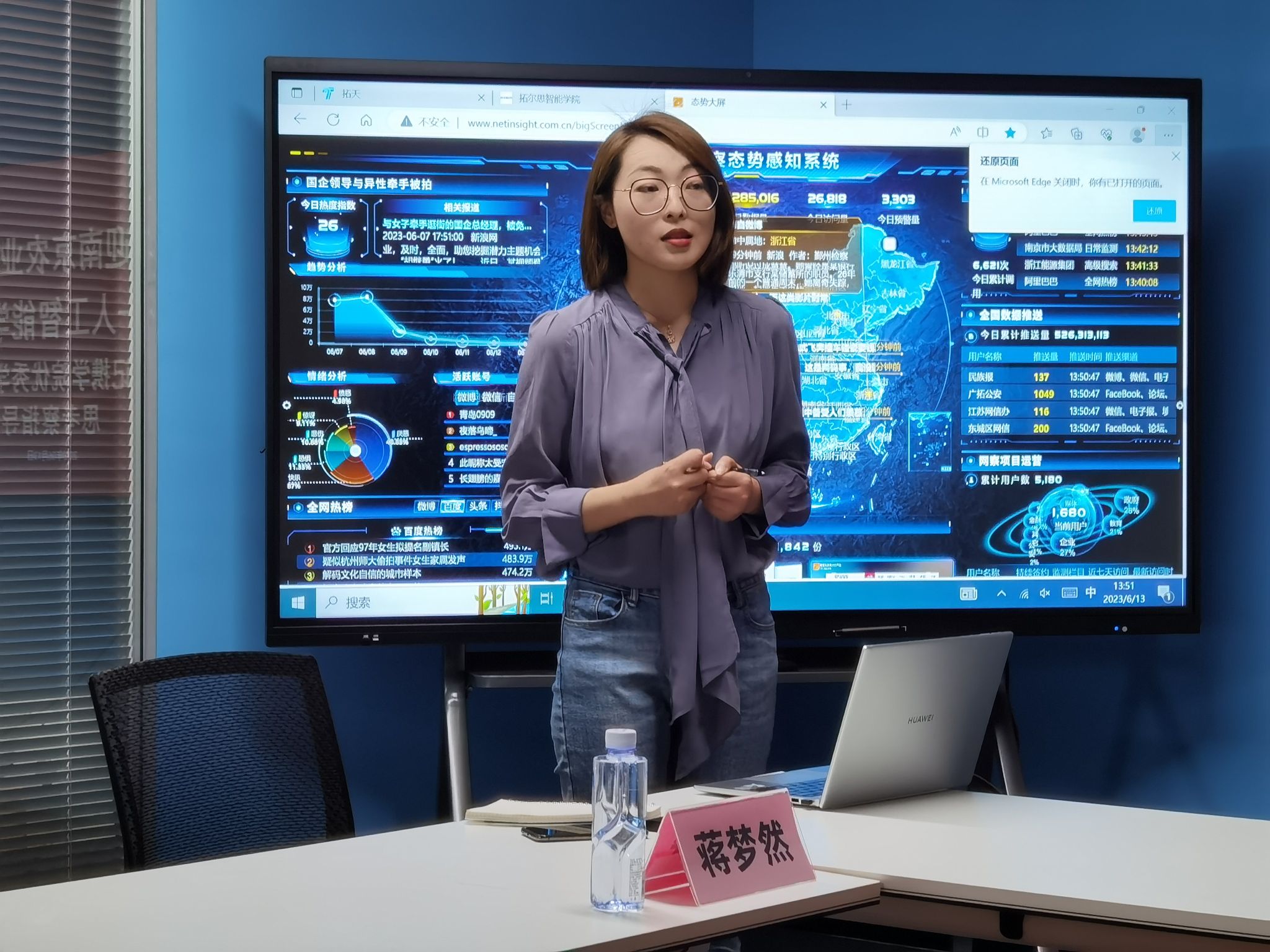 座谈会伊始,蒋梦然展示了公司的技术产品。接着,她对公司在大数据、人工智能、数据安全三大技术领域的产品优势和校企合作方面的布局和成功案例进行了介绍。随后,拓尔思校企业务总负责人吴琳琳展示了近年来的校企合作典型案例。