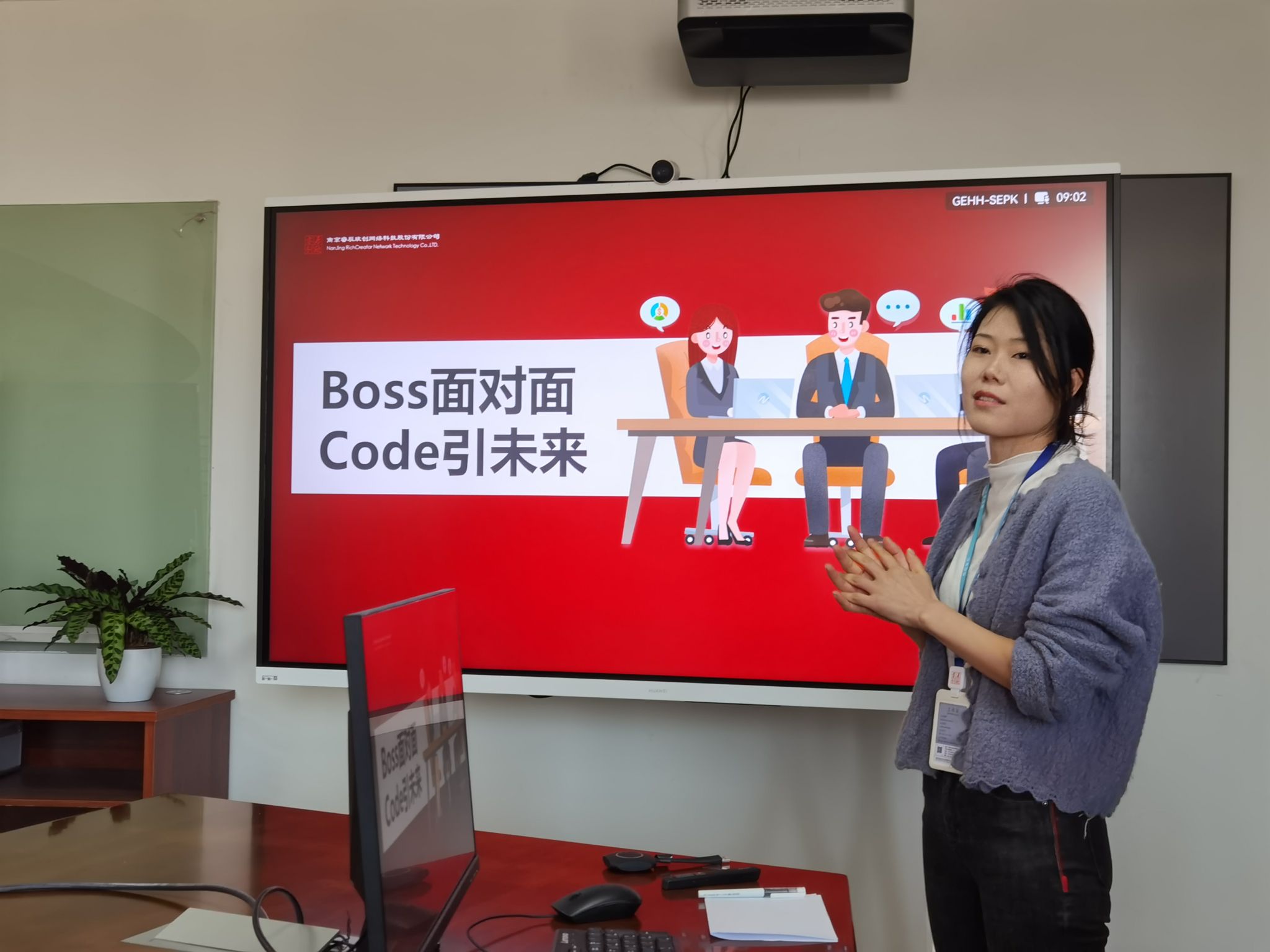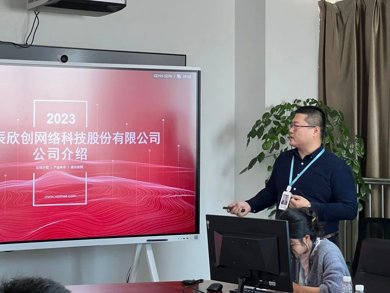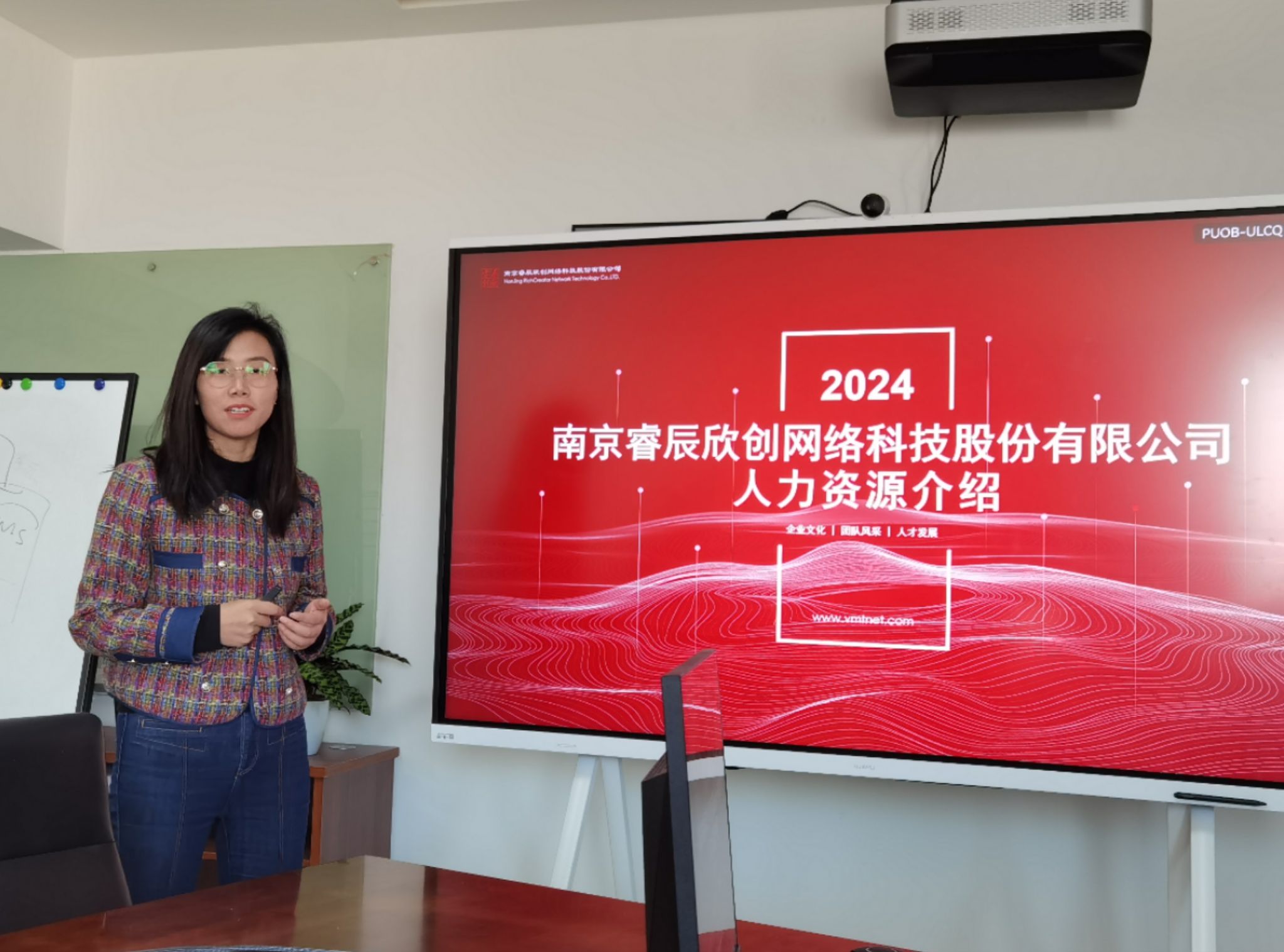 移步会议室,销售部负责人杨阳、人力资源部负责人黄金芳,分别介绍了睿辰欣创的基本情况、发展历程、产品体系、企业文化、人才发展培训体系、薪酬福利体系及2024届应届毕业生的招聘需求等。