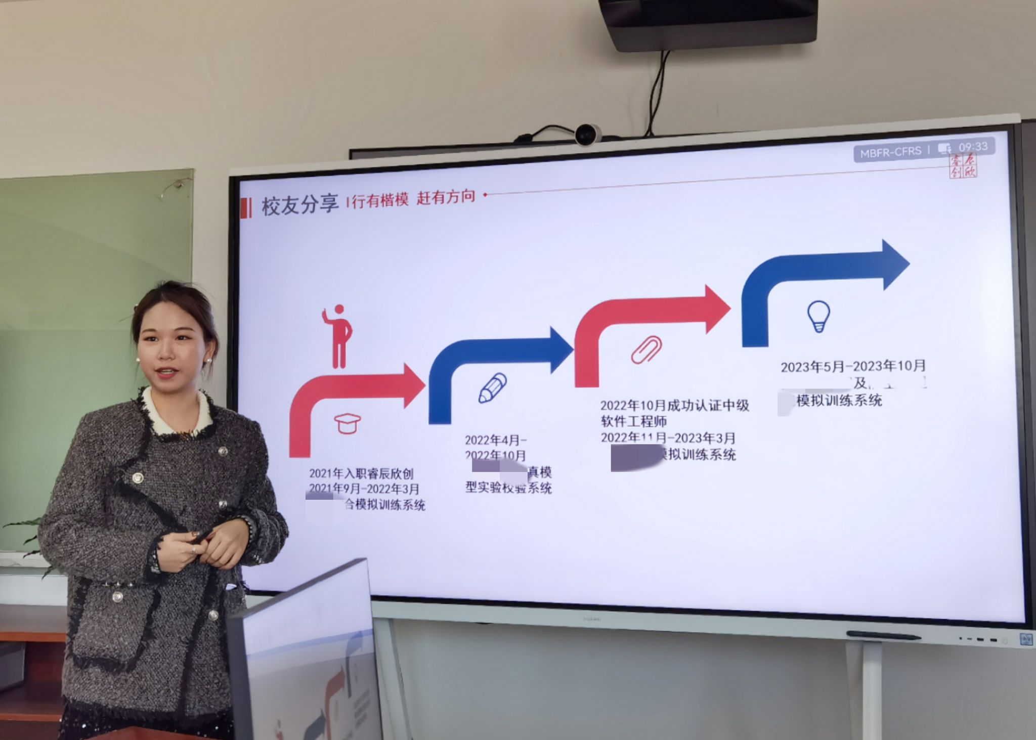优秀校友,计算机科学与技术专业2020届本科毕业生童佳艳,就入职睿辰欣创以来的成长经历与感悟,向学弟学妹们作了精彩分享。她的生动阐述有效引导学弟学妹们认知到了以下几点:①实习是快速成长的有效途径;②从做中学,从学中做——化“经历”为“经验”;③良好的团队氛围赋能个人成长。