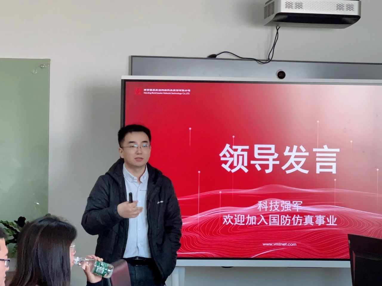 随后,研发中心负责人郑远代表公司,由衷期盼此次交流活动能激发更多优秀学子的荣誉感和责任感,进而吸引更多新时代青年才俊投身到军事仿真事业建设中,在强军强国征程中成长成才,在国家发展、民族兴盛上贡献力量。