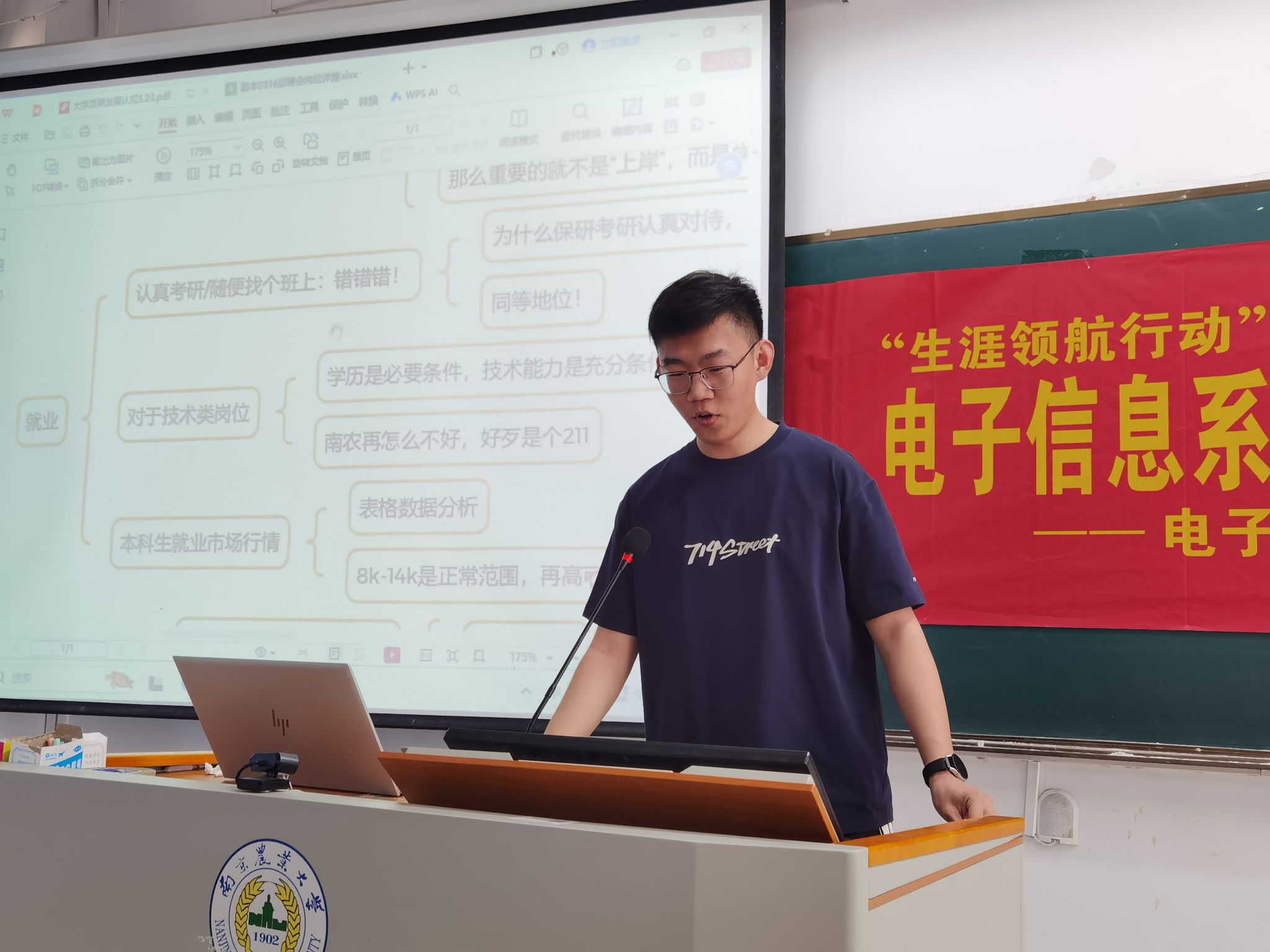 电信205梁文超、电信205韩晓飞,从考研与求职“双线推进”、求职目标迷茫到锁定的成长历程、“校招”时间线分析与机会把握、简历质量优化、面试技巧提升等诸多方面展开,面向有求职需求的学生群体,详实输出了大量宝贵实战经验。